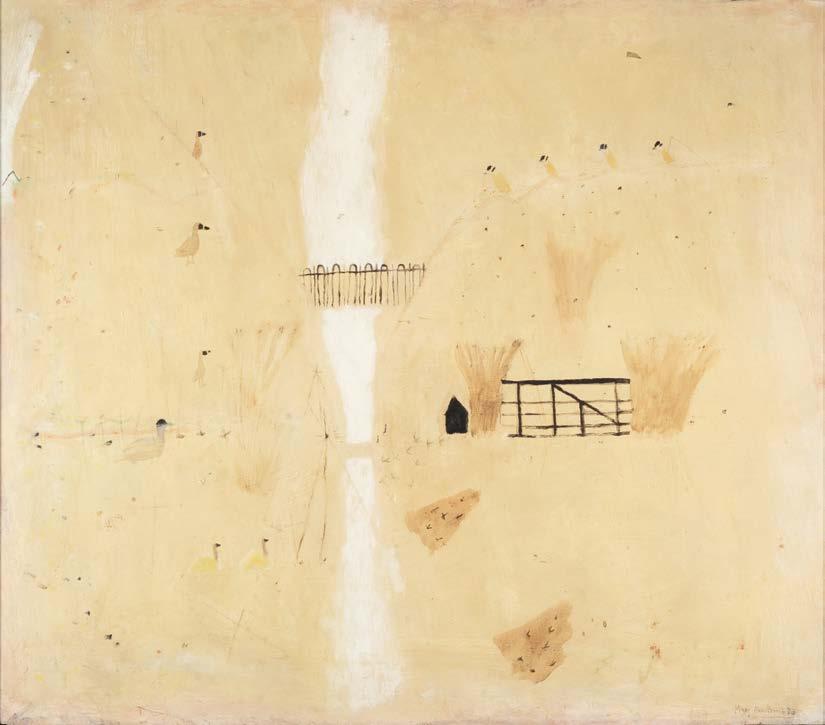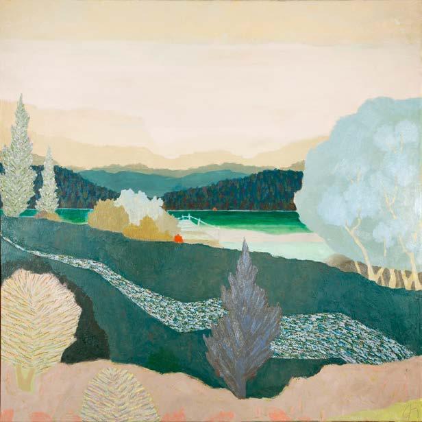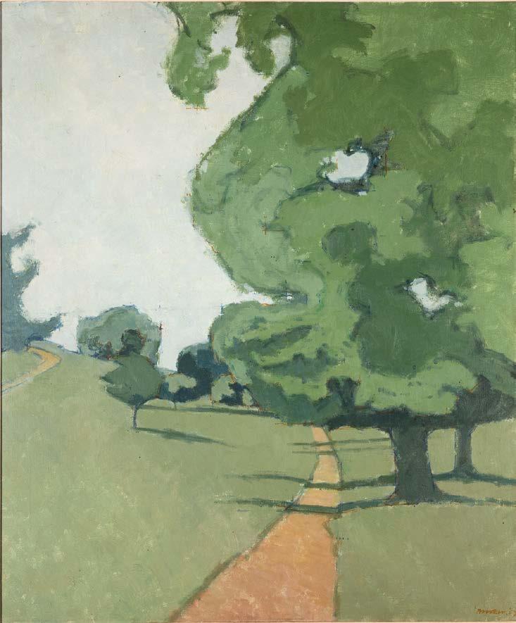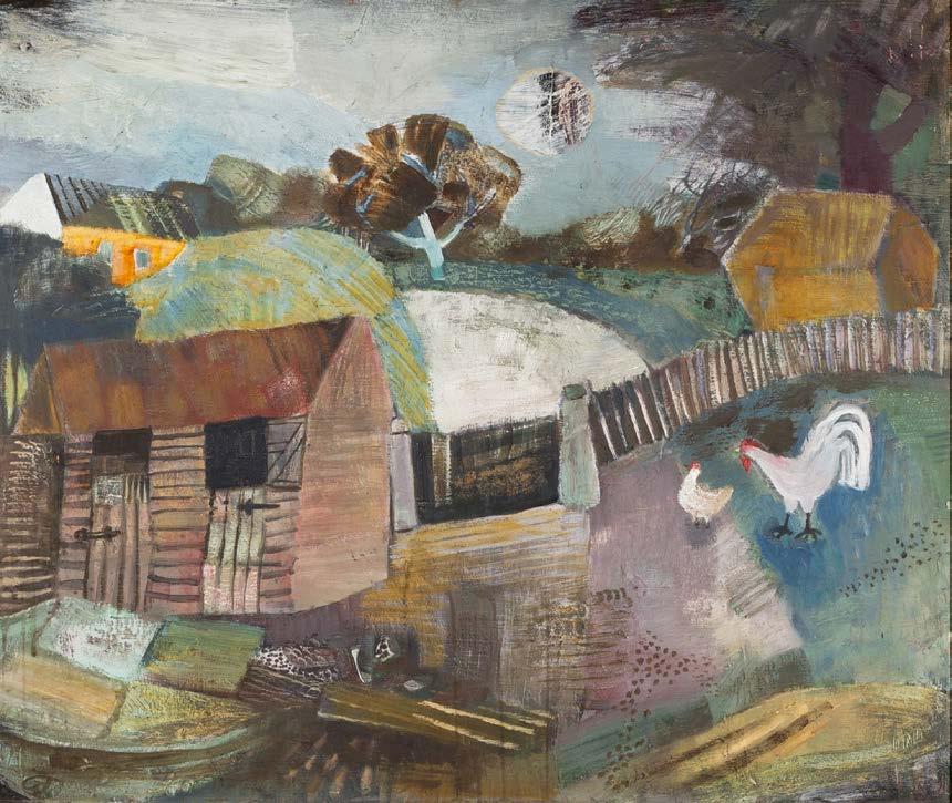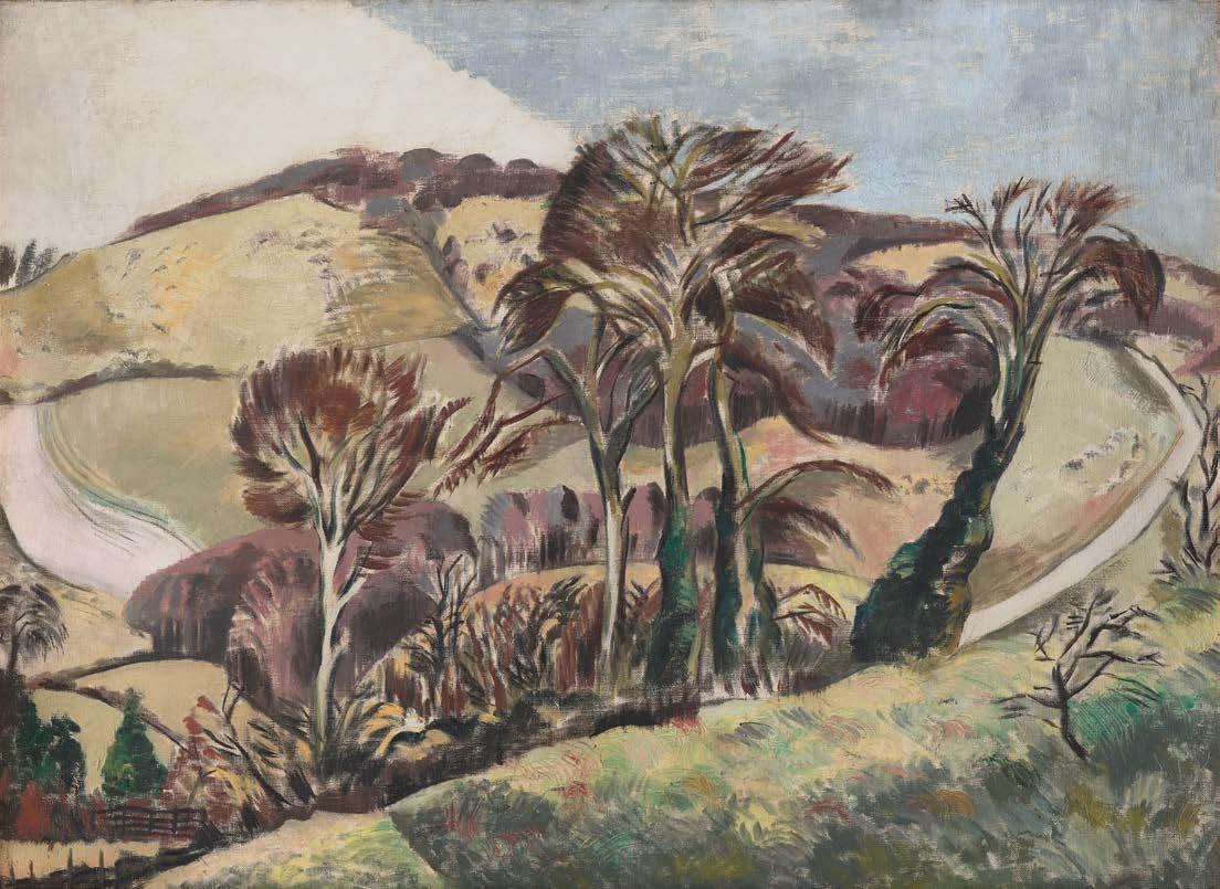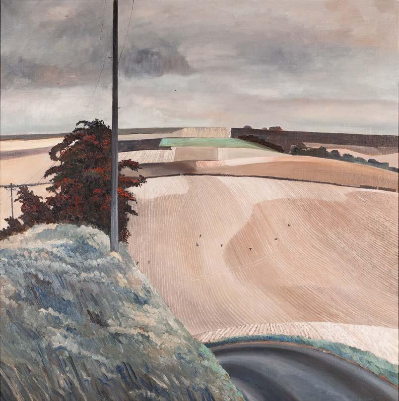 Traditional representation in the works of Charles March Gere and John Arnesby Brown gave way to Gwyneth Johnstone and Doris Hatt’s more naïve styles. There are subjective interpretations of nature in the dramatic forms of Graham Sutherland’s ‘Conglomerate Rocks’ and John Hubbard’s heightened emotional response to the currents and gyres of waterfalls. The abstracted landscapes of John Wells and Keith Vaughan reduce nature to simplified shapes and interlocking planes while Contemporary painters such as Richard Ballinger and Pamela Burns bring new accents and notes to the British landscape tradition.