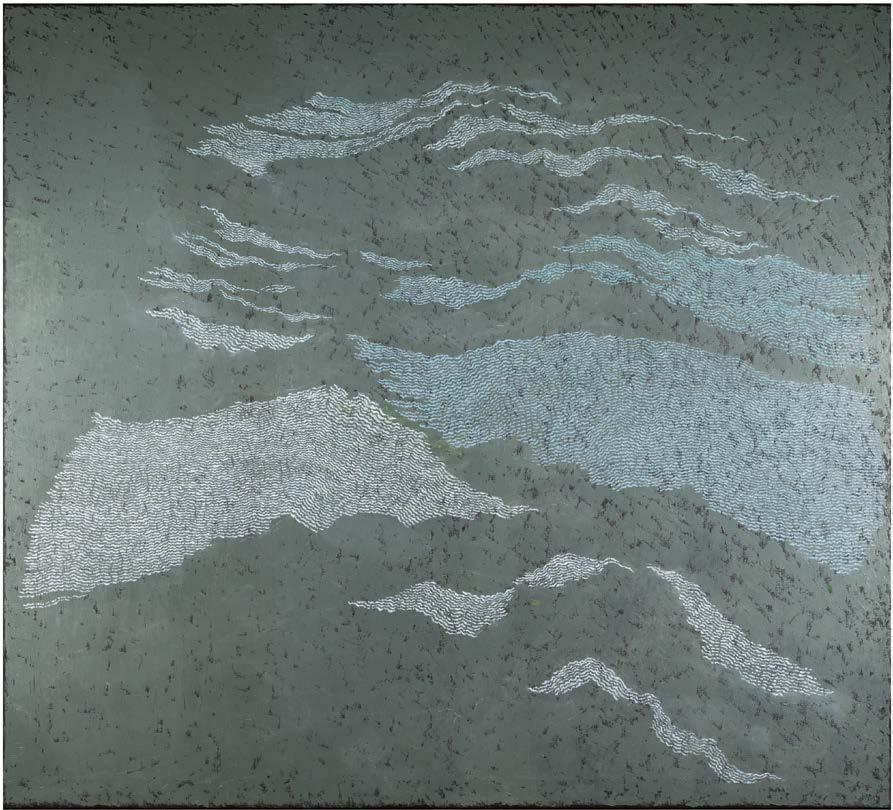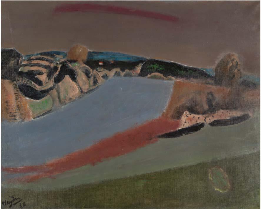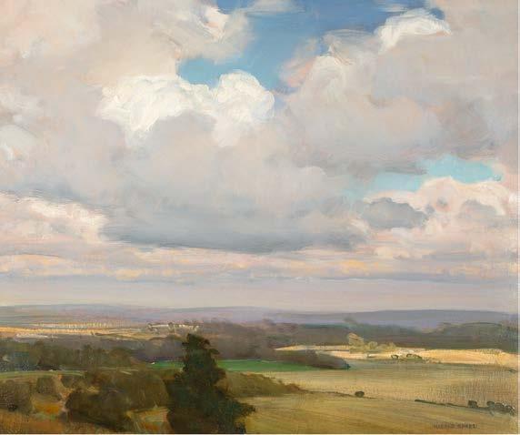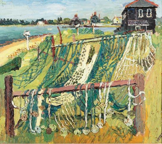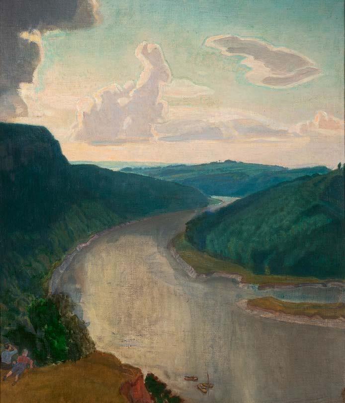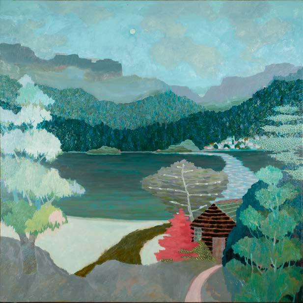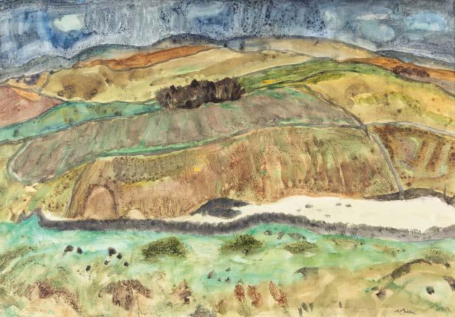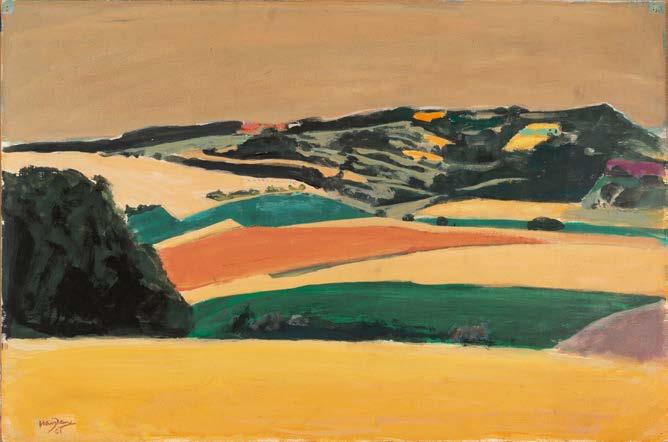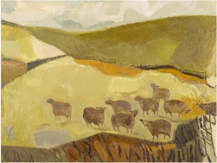 Traditional representation in the works of Charles March Gere and John Arnesby Brown gave way to Gwyneth Johnstone and Doris Hatt’s more naïve styles. There are subjective interpretations of nature in the dramatic forms of Graham Sutherland’s ‘Conglomerate Rocks’ and John Hubbard’s heightened emotional response to the currents and gyres of waterfalls. The abstracted landscapes of John Wells and Keith Vaughan reduce nature to simplified shapes and interlocking planes while Contemporary painters such as Richard Ballinger and Pamela Burns bring new accents and notes to the British landscape tradition.