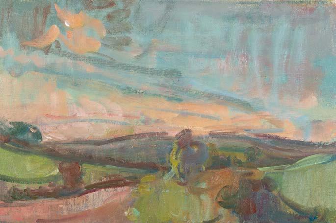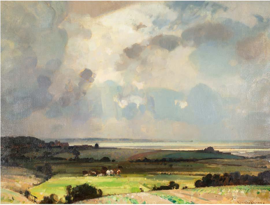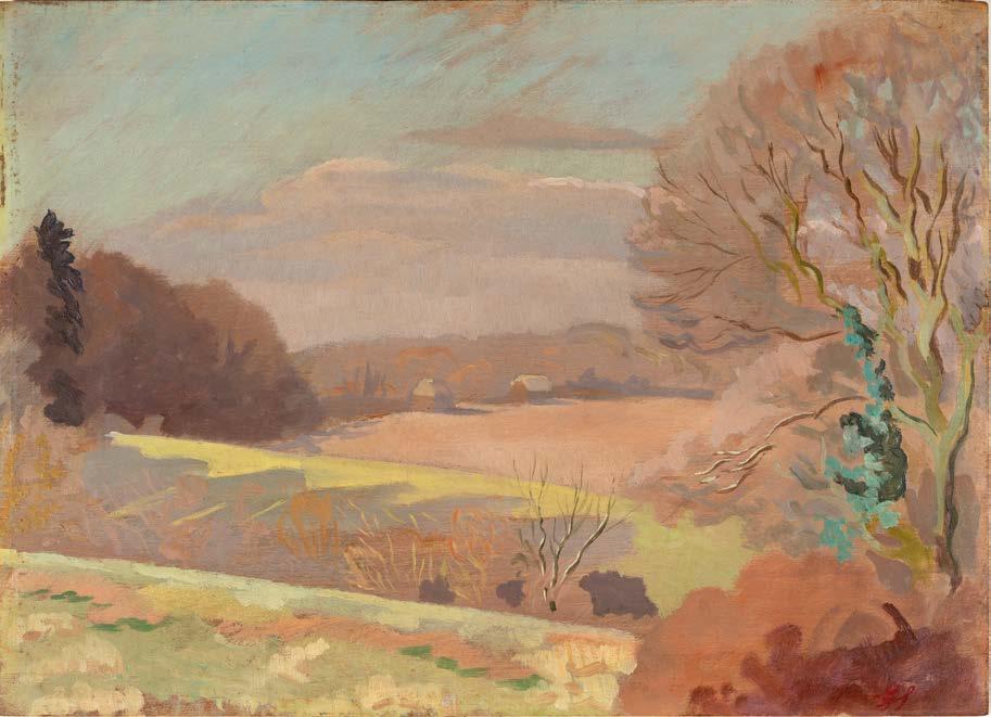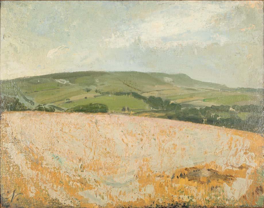 The Cornfield above Alfriston, 1927 signed with monogram oil on canvas board