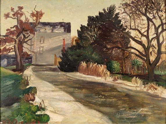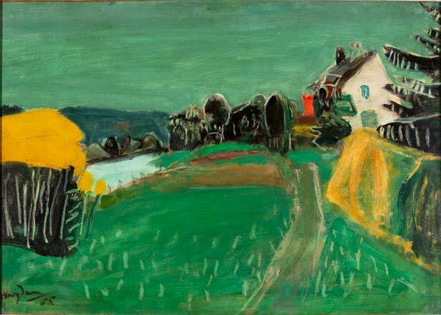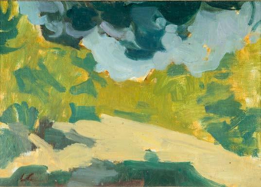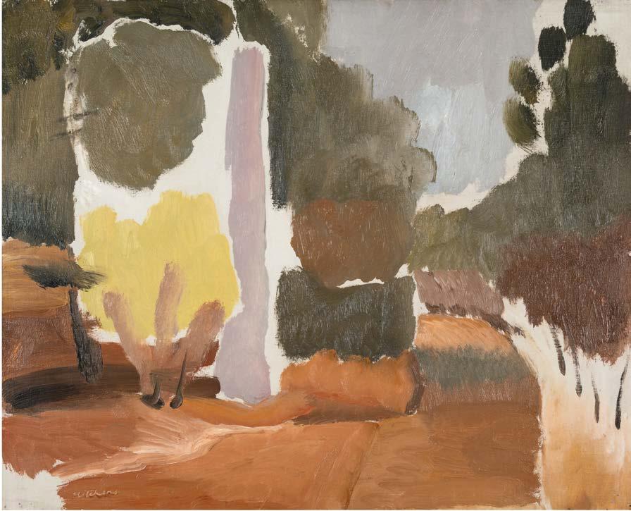 Landscape with Tree and House, 1960 signed with monogram oil on board