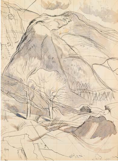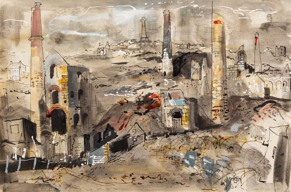 Deserted Tin Mines, Cornwall, 1956 signed pen, ink, watercolour and gouache