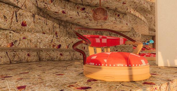 Ambient l ghting s used throughout the space o generate a sense of comfort and warmness The space is one of relaxation and immersion for users - a lowing them to be transported into a wor d o phantasmagoria by looking to the past inordertouncoverthefuture.