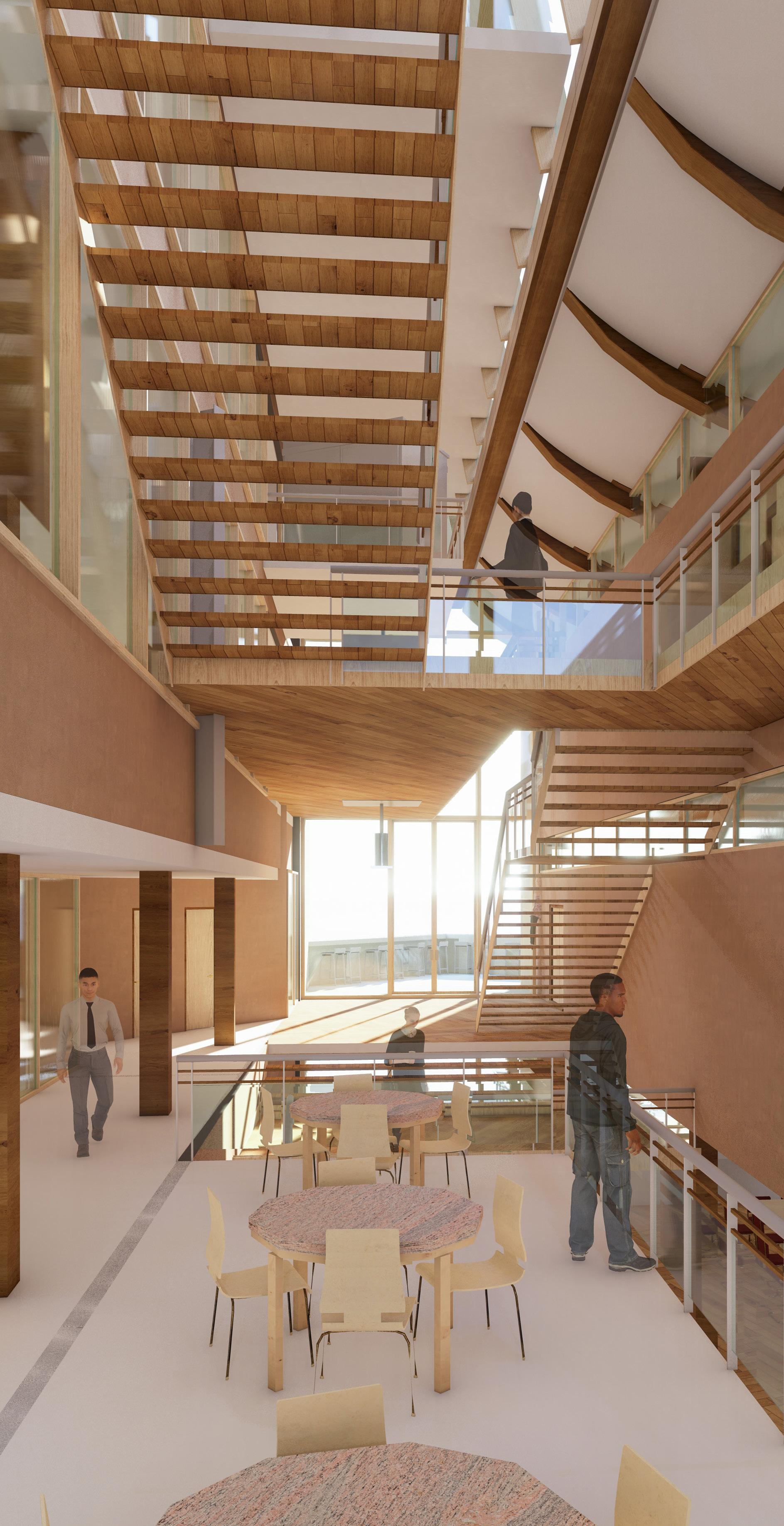 The use of a central atrium allows for a central activation space where movement, conversation and learning is encouraged. A clear line of site from the industrial light rail to the enduring Parramatta River has been considered.