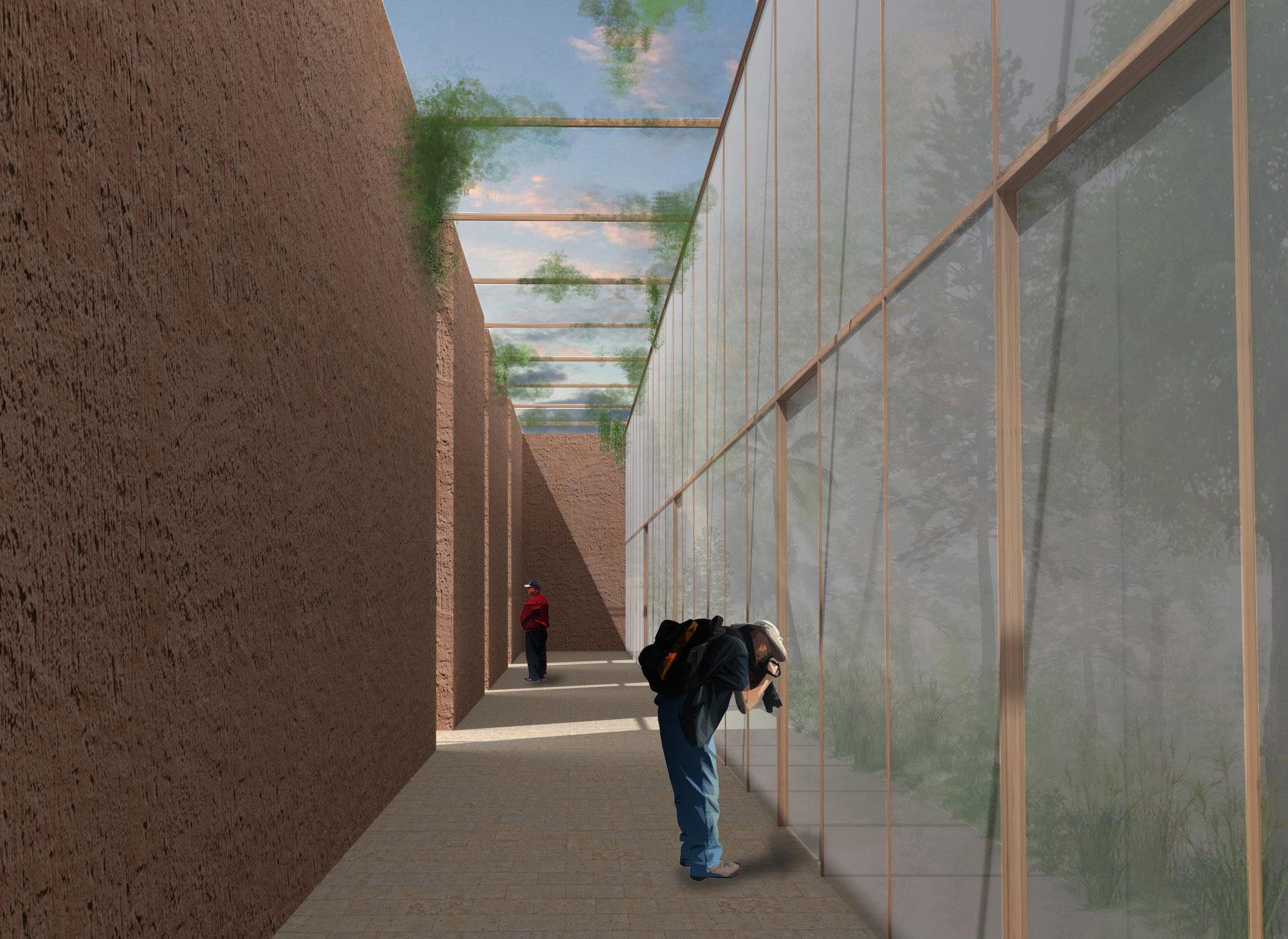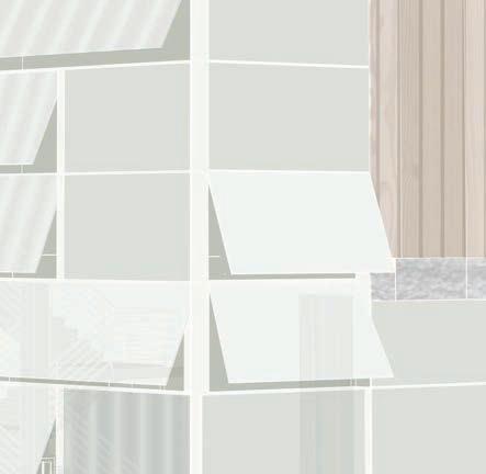 Along the south facade on each floor are large greenhouse buffer zones which do not require mechanical heating and cooling. They are designed with slim horizontal glass windows that open for ventilation or are used as shading mechanisms. This brings the layering of natural with the unnatural into the building through the bufferzones weaving through the program.