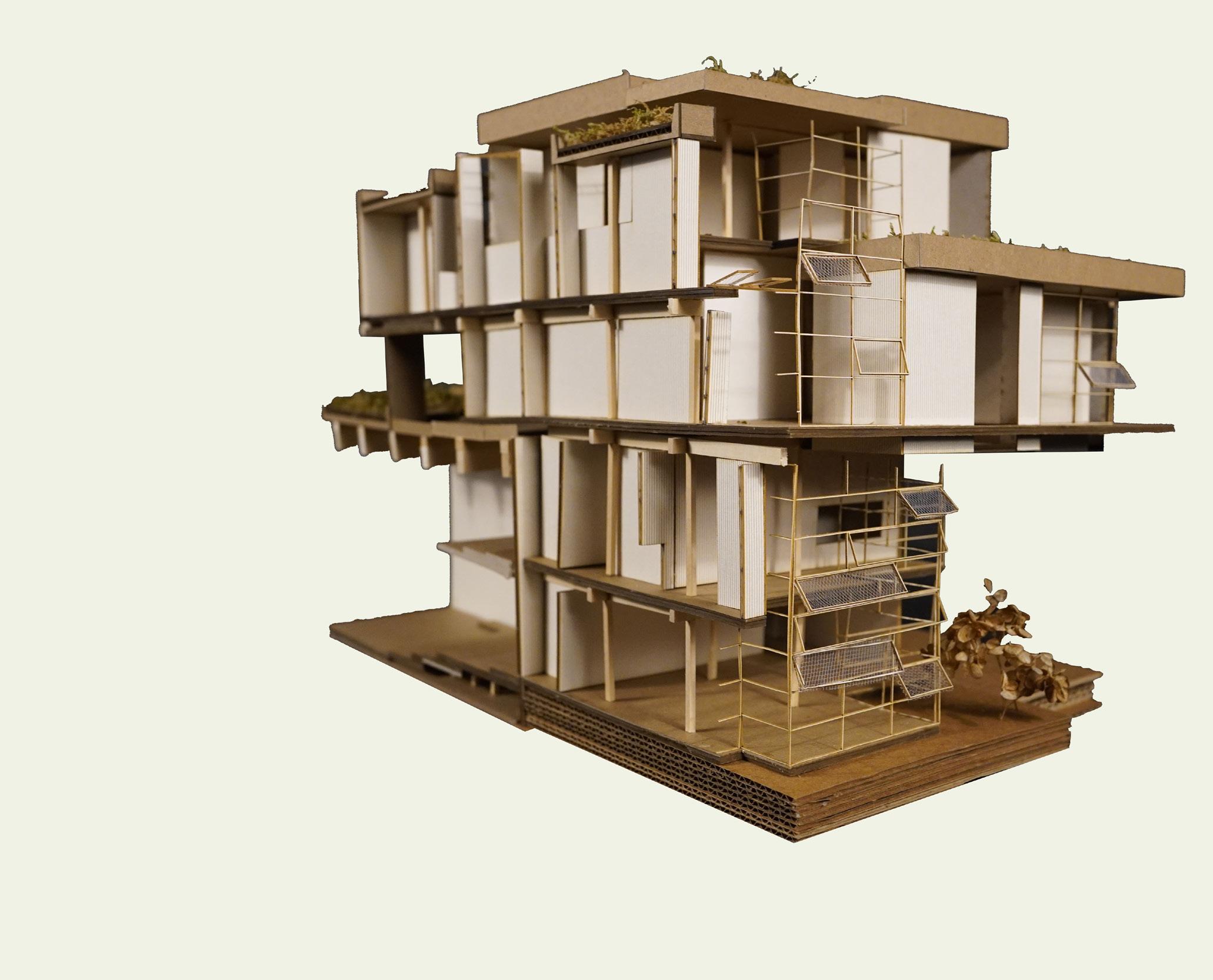 This project was a small housing program for a botanical illustrator. With the idea that the botanical illustrator must get as close to nature as possible without disturbing or destorying it, the structure was designed through the concept of allowing the unatural architecture to be strangled and overcome by nature. This influenced the design through creating a light and transparent structure that can be easily adjusted to not impede the existing nature and to be seemingly “barely there” .