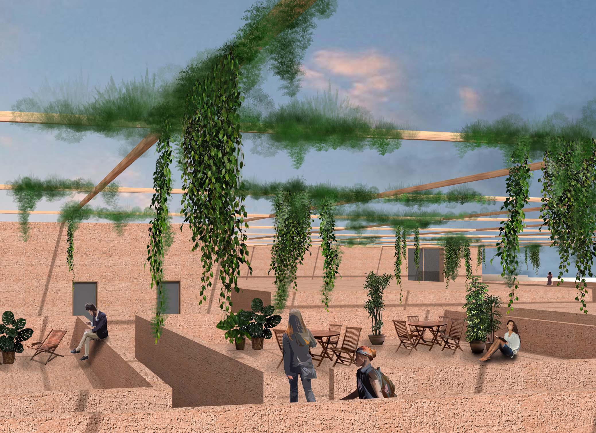 Today, Campo Boario is a large empty space in the neighborhood yet to be inhabited. The main intention of the design is to create an intersection between the natural and architectural moments throughout the site. Given the industrial buildup and immense scale of Campo Boario, we aimed to introduce natural elements to bring back the human scale. Pulling from the existing axes of the slaughterhouse, the gridded system informs the semipermeable roof mechanism inside the campo. From this grid, we divided three sections, a large block of green in the center surrounded by thick walls allowing for an enigmatic experience as one moves through the two other sections whose elements create a city-like density and atmosphere.