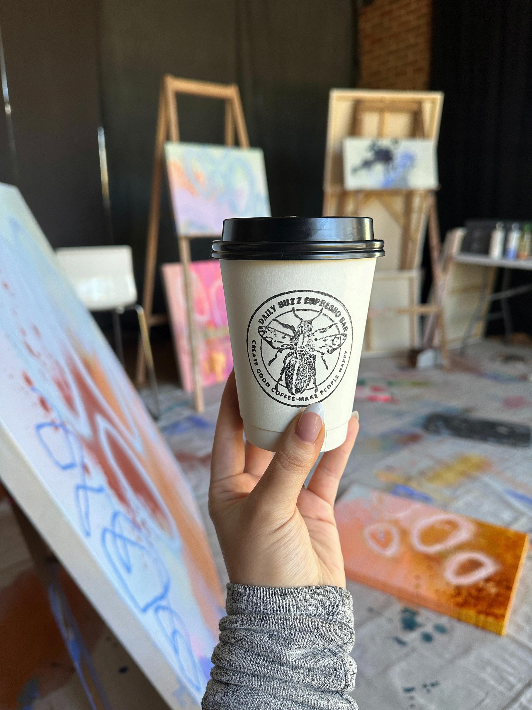 CHAIATTHECOFFEESHOP MIXEDMEDIAONCANVAS, DOUGLASFIRFRAME