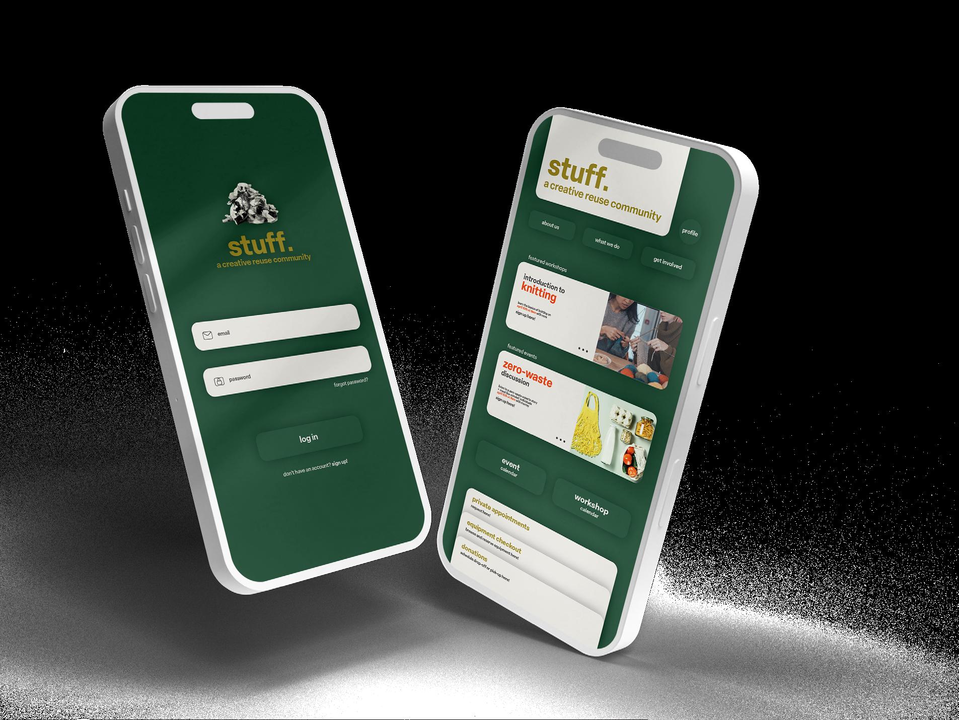 the stuff. app offers information about the space at the user’s fingertips. it allows users to create an account where they can browse, sign up for, and track events and classes on the calendar. private appointments, equipment, and donations can also be booked on the app.