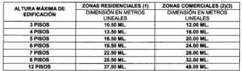 A excepcion de viviendas unifamiliares, se considera el siguiente cuadro, para las viviendas