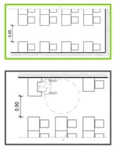 circulaciones donde existan mobiliarios de facil manipula que permitan rápida evacuación.