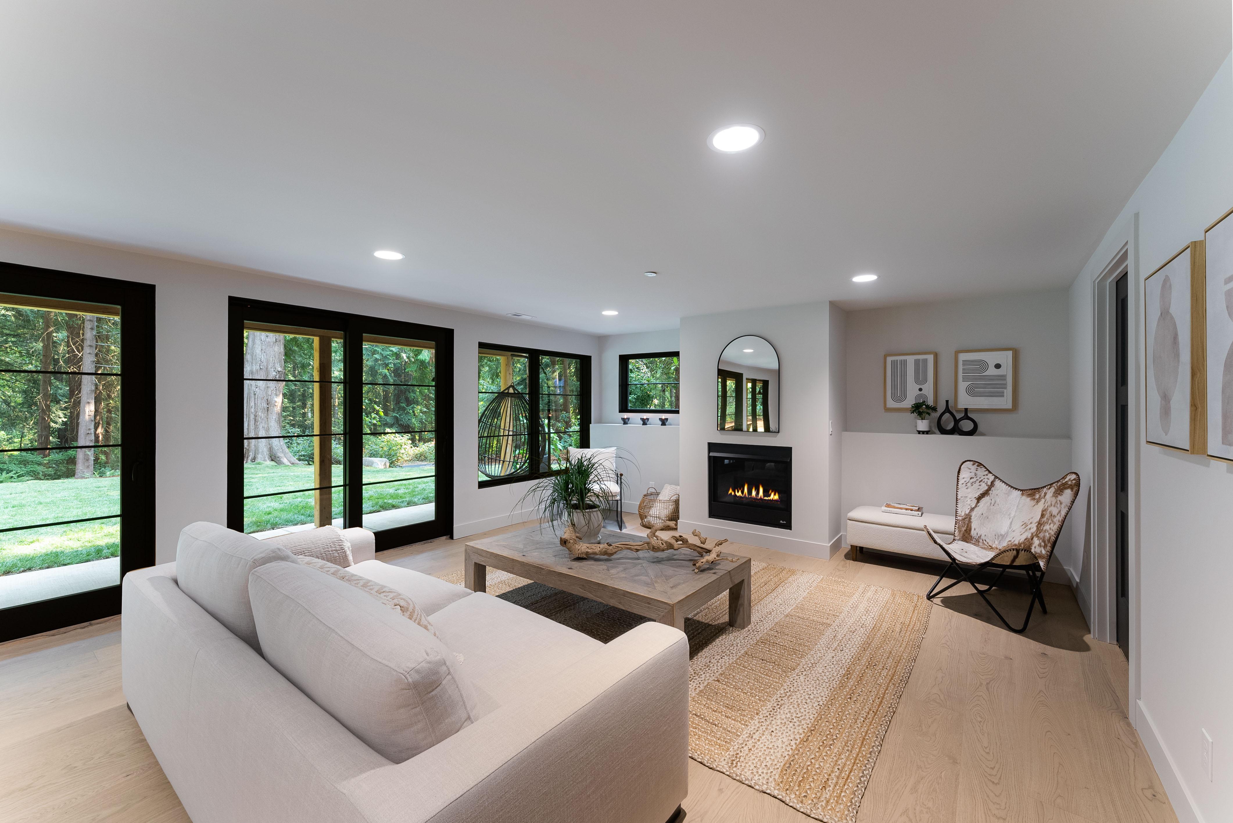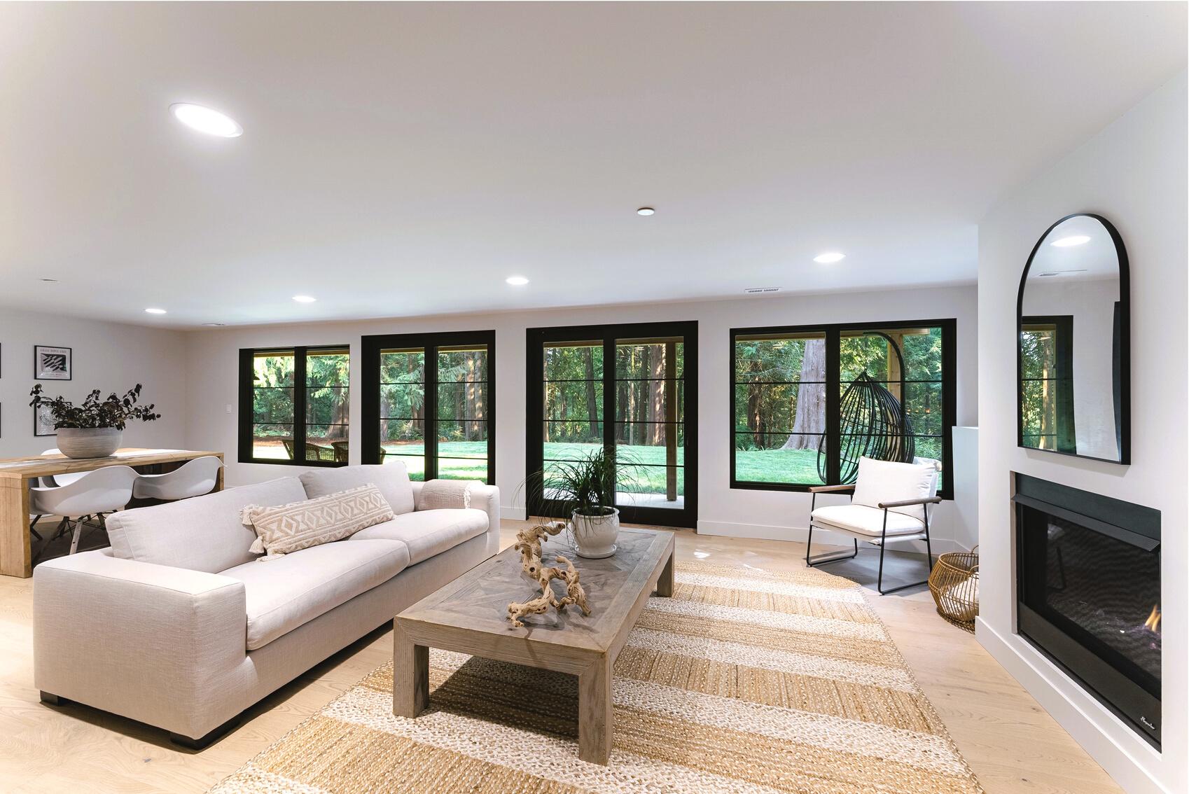 More than 1200 sf of glass in windows and doors allowing the verdant landscape to be the art pieces