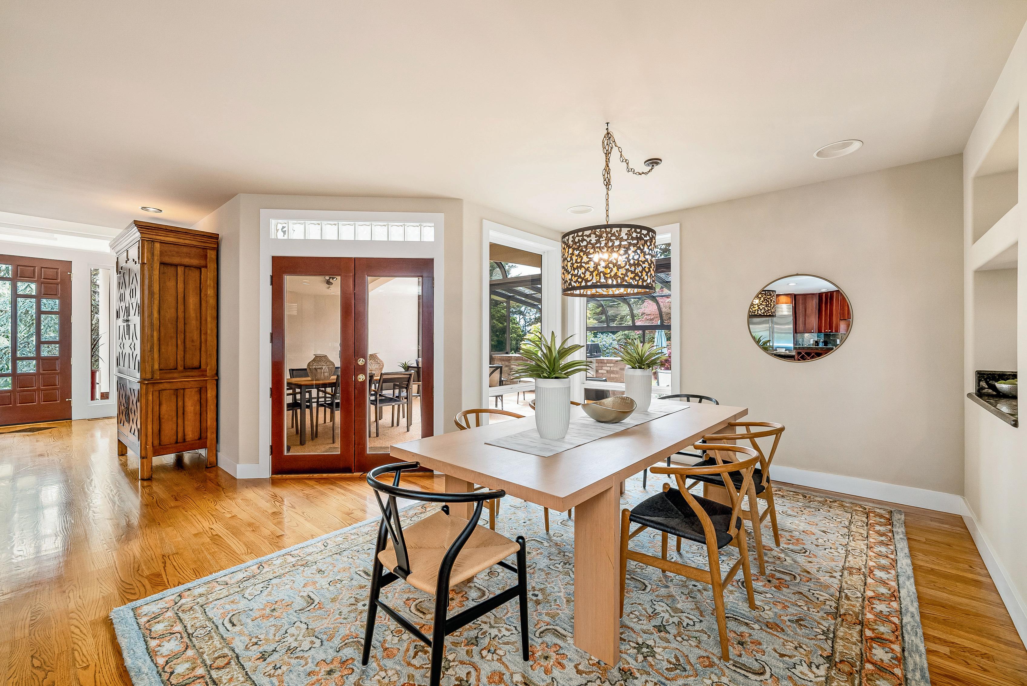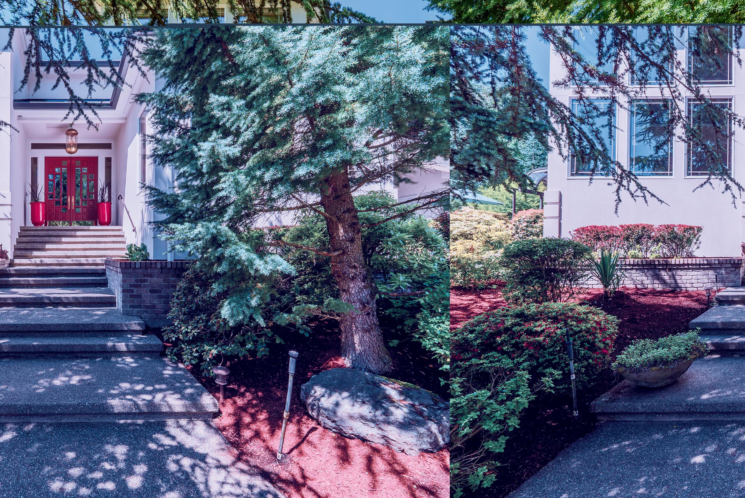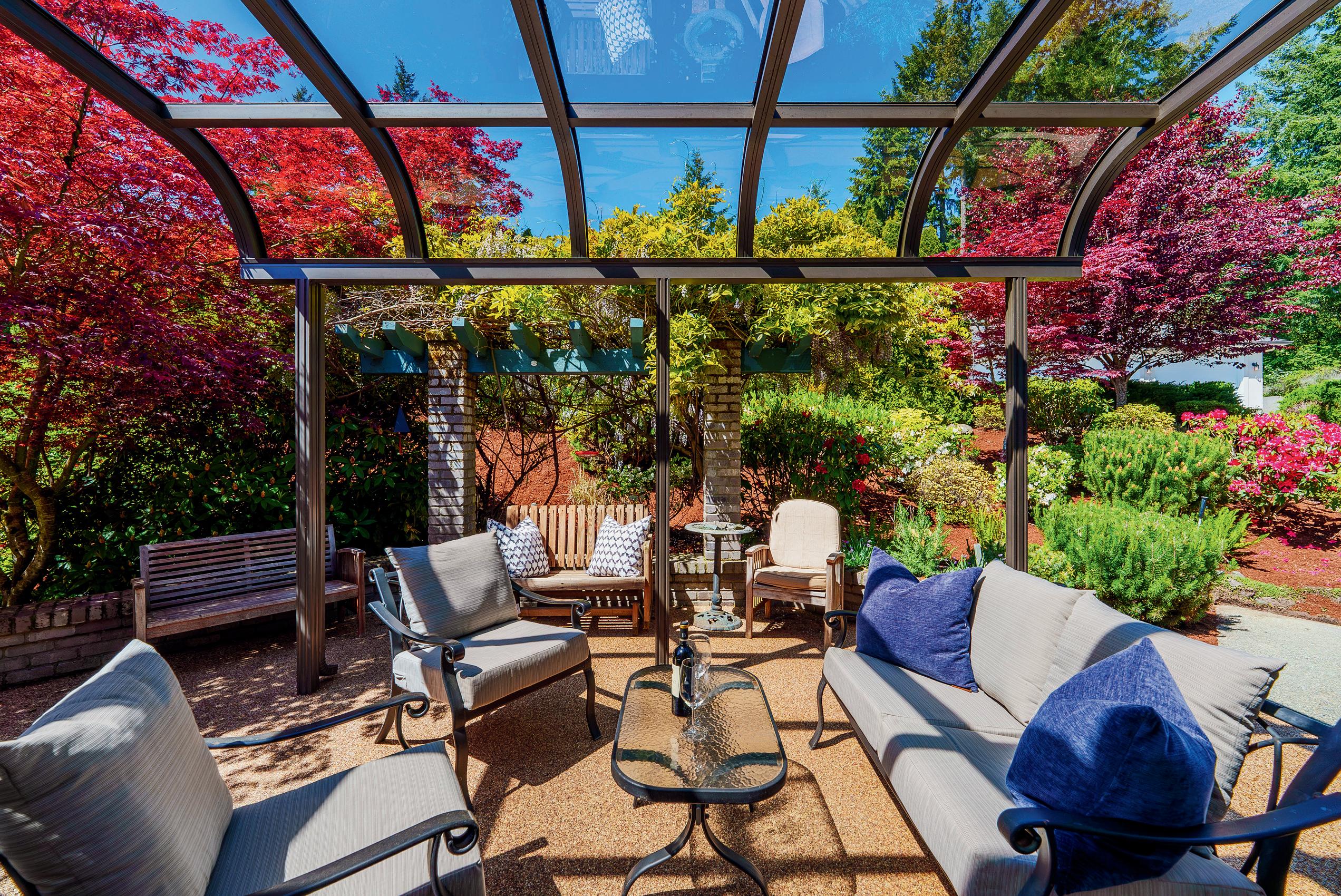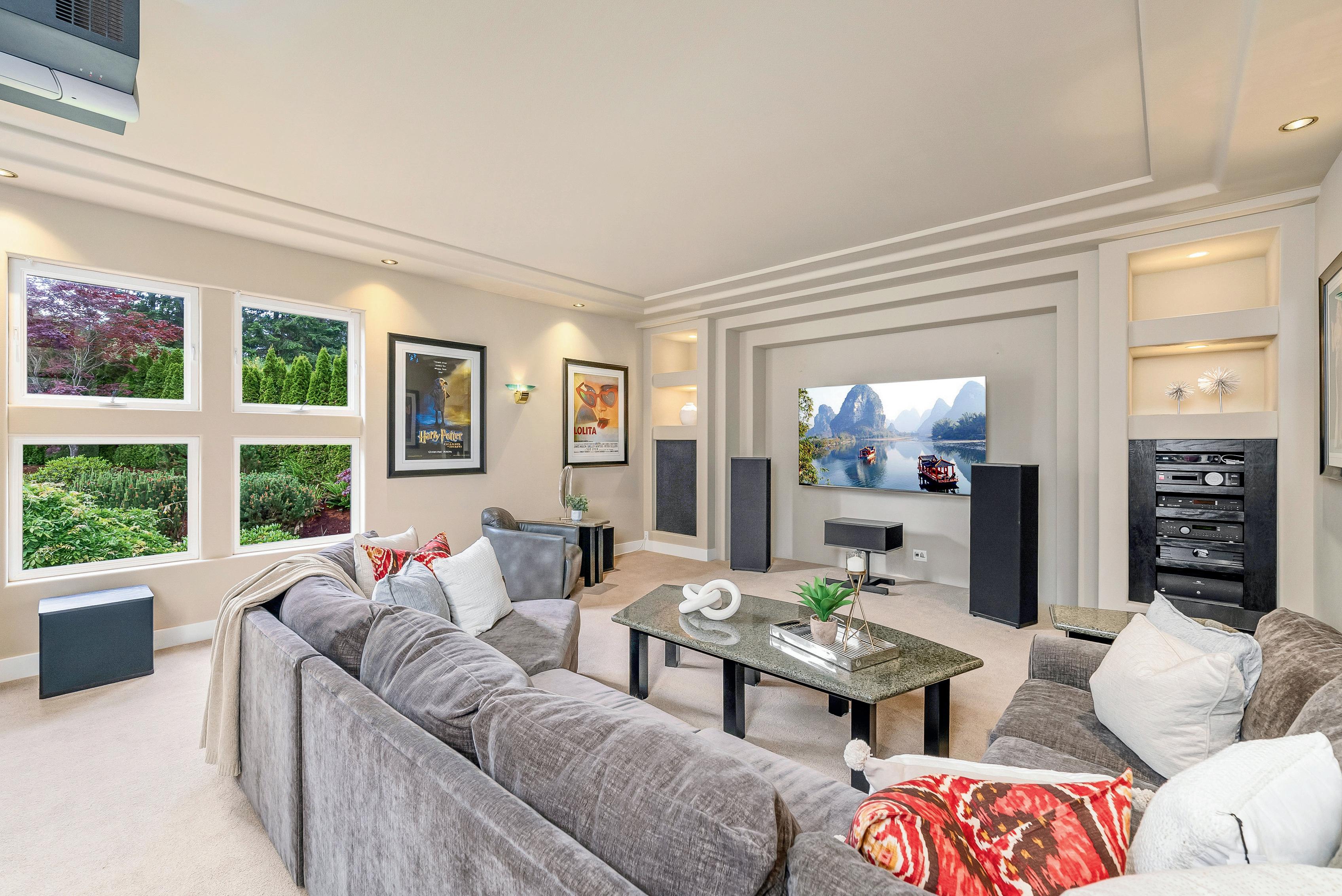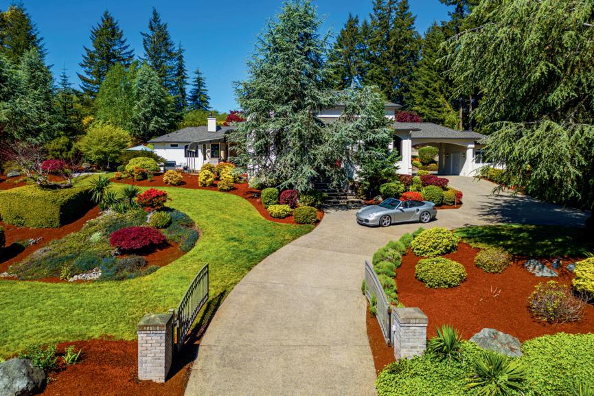 In this stunning estate, where creative architecture & artistic design come together in perfect harmony, on nearly 2 acres. The gates open revealing vibrant gardens, the home's grand facade of cascading windows, impressive portico, and all seasons glass covered patio.