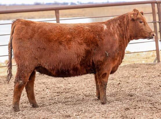 This 2018 Redemption daughter raised one of the very best bull calves we have ever produced. He was Lot 1 in last year’s sale, and we continue to market semen from him today — a true testament to the strength of this cow family. He is pictured above the Bred Registered Heifers in the catalog. We retained her 2025 heifer calf, a full sibling to that standout herd bull, to continue the influence of this proven mating within our program. She has been transitioned to a fall-calving schedule and remains a high-quality, productive female with a track record that speaks for itself.