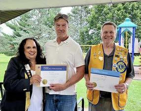 Lion David Stedman receives the 2023-2024 Transporter of the Year Award from the Lions Eye Bank of Wisconsin President and PDG Don Drew. LEBW representative and PDG Greg Pryor was also on hand for the presentation.