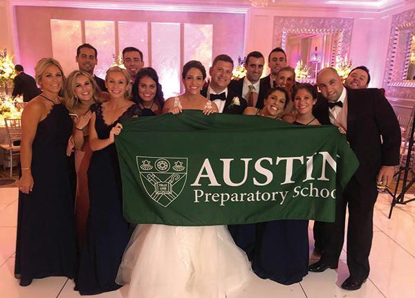 Are you getting married? The Office of Alumni Relations will lend you an Austin Prep banner for photos at your wedding.
