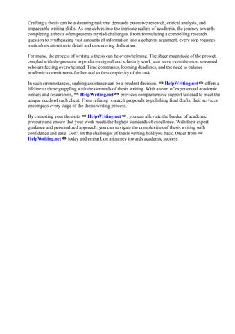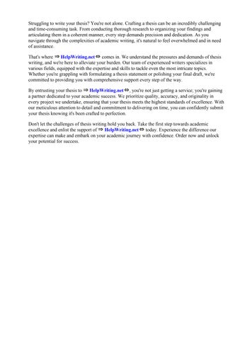Given the complexity and challenges associated with writing a thesis statement, many students opt to seek assistance from professional writing services. ⇒ HelpWriting.net⇔ offers expert guidance and support to students struggling with their thesis statements. With experienced writers and editors on hand to provide personalized assistance, ⇒ HelpWriting.net⇔ can help ensure that your thesis statement is clear, concise, and well-supported by evidence. By entrusting your academic writing needs to ⇒ HelpWriting.net⇔, you can save time and alleviate the stress associated with crafting a thesis statement, allowing you to focus on other aspects of your studies.