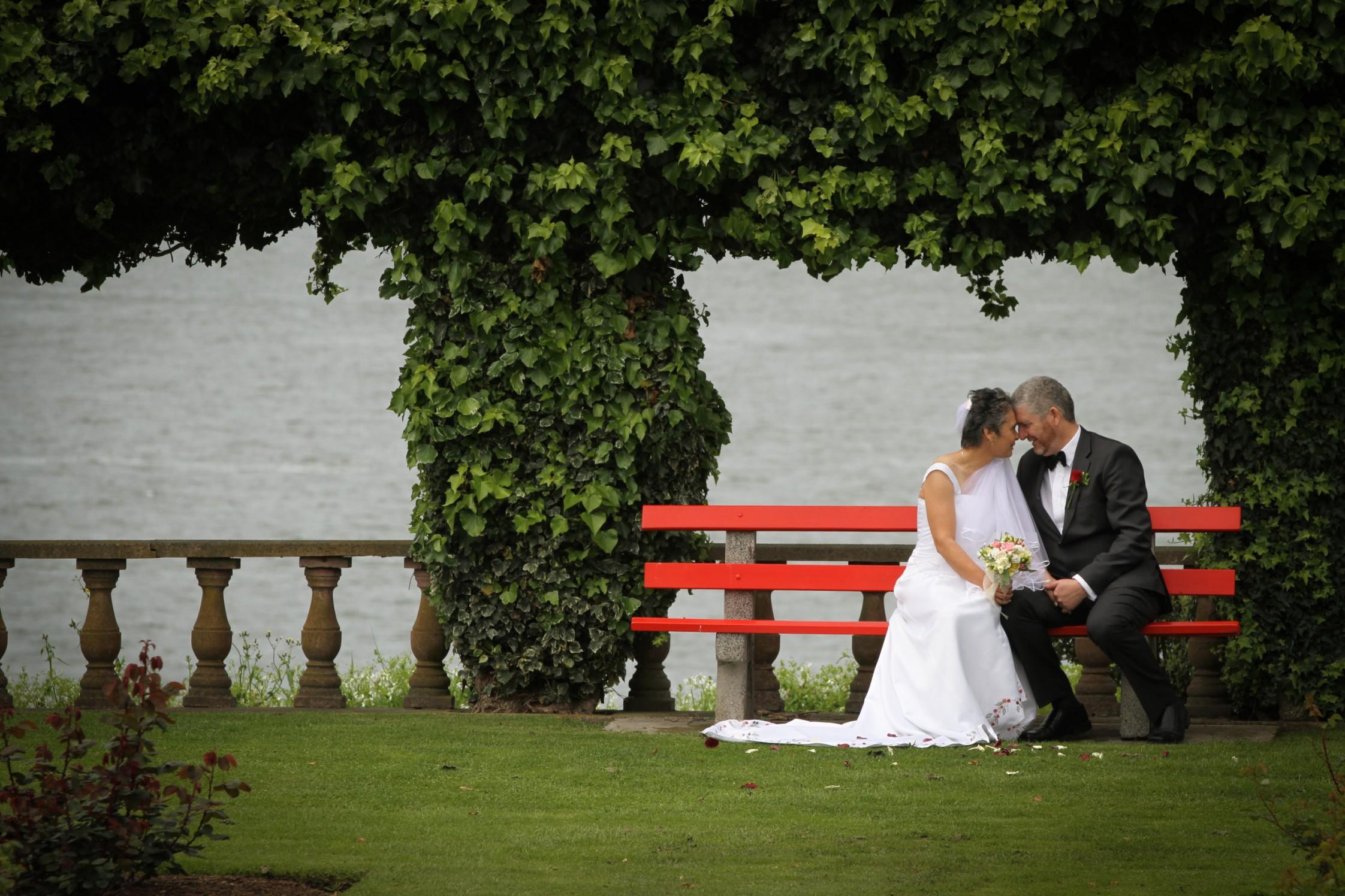 Family and friends before Jenny and Jason are pronounced to be married; they are going to share a reading with each other.