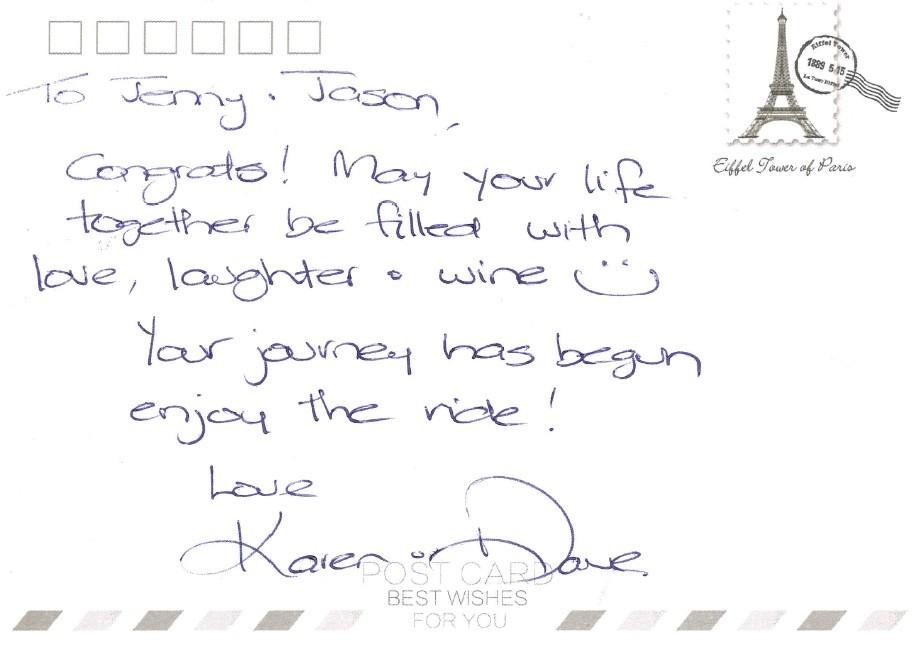 Thank you Jenny and Jason we are all thrilled to join with you today and wish you a wonderful long life together as the following words further depict