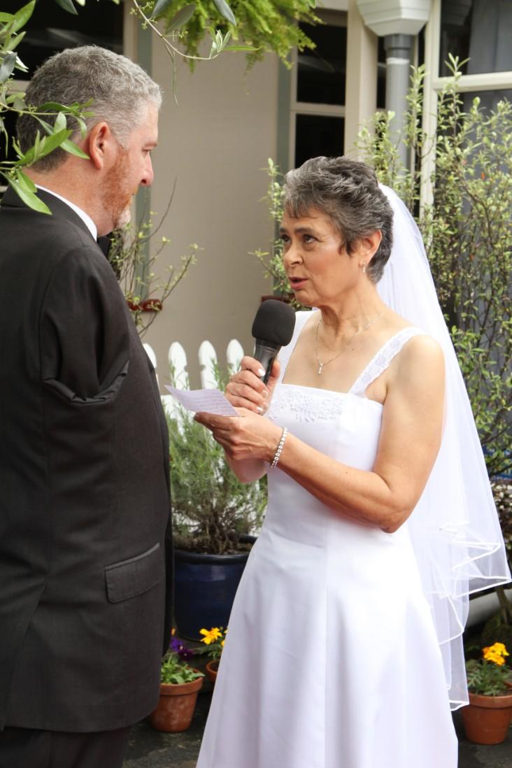Today I call upon these people here present to witness that I, Jenny Elizabeth Gibson take you, Jason Mark Whitcombe as my lawfully wedded husband.