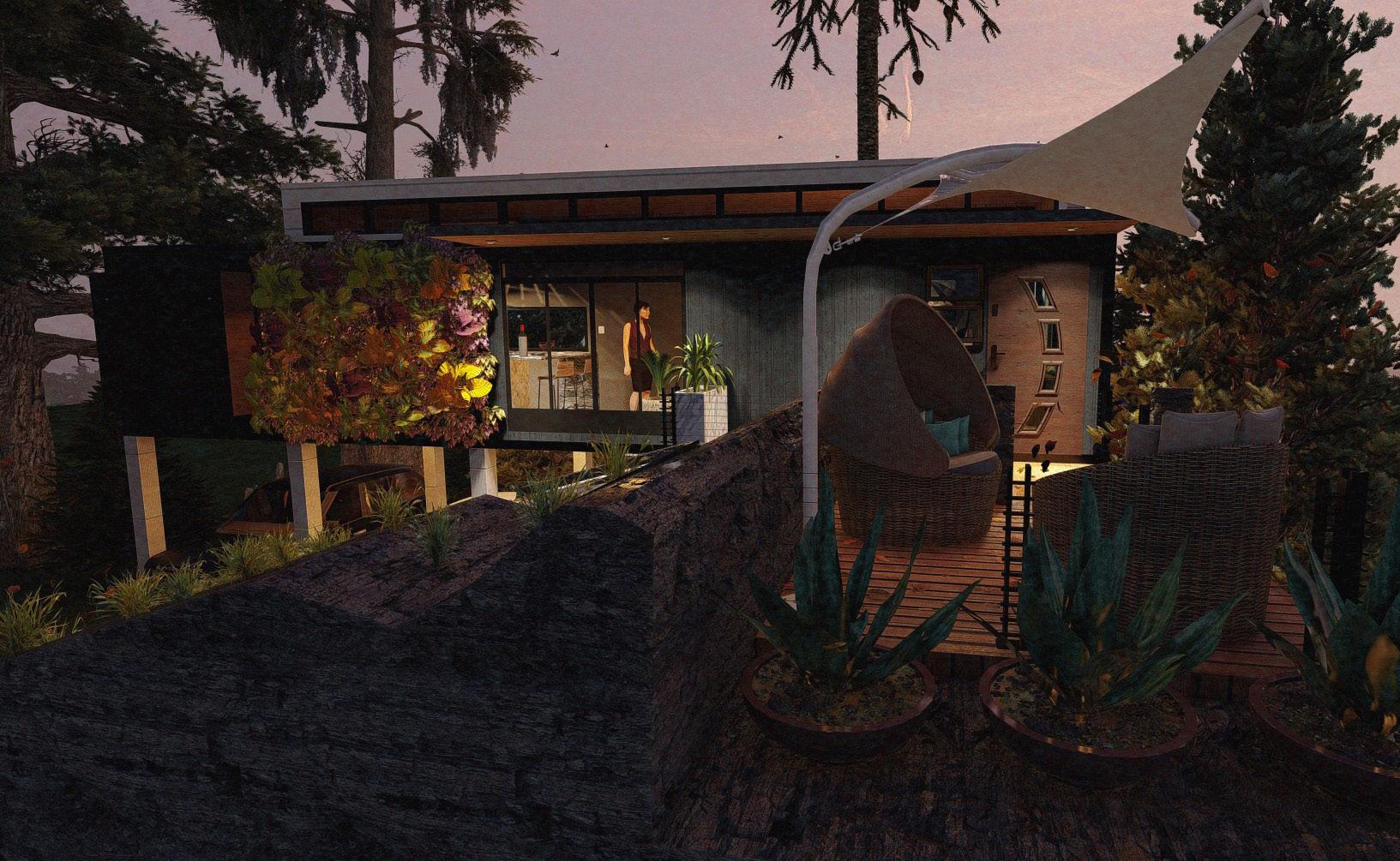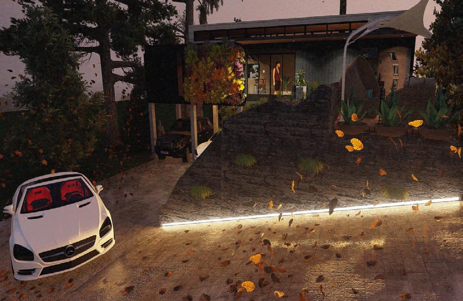 OUR GOAL IN THIS PROJECT IS TO APPLY THE KNOWLEDGE WE HAVE LEARNED DURING OUR FIRST SEMESTER IN ORDER TO APPLY DIFFERENT APPROACHES AND THE USE OF SPACE IN PLANNING FLOOR LAYOUTS. WE WERE FREE TO DESIGN LANDSCAPE ACCORDING TO HOW WE WANTED OUR MODEL TO APPEAR. THUS, I CHOSE A SLOPING DRIVEWAY TO THE GARAGE AND CONTINUOUS WATERFALLS TO DEMONSTRATE THAT THIS MODEL IS INTENDED TO BE RELAXING. INTERIOR DESIGN GOES FOR A WARM AND WELCOMING FEELING FOR RESIDENTS AND USE ALL SPACES OF THE CONTAINERS FOR GOOD PURPOSE. THE SPACES ARE PLANNED IN ACCORDANCE WITH RESIDENTS’ DAY TO DAY LIFE NEEDS.