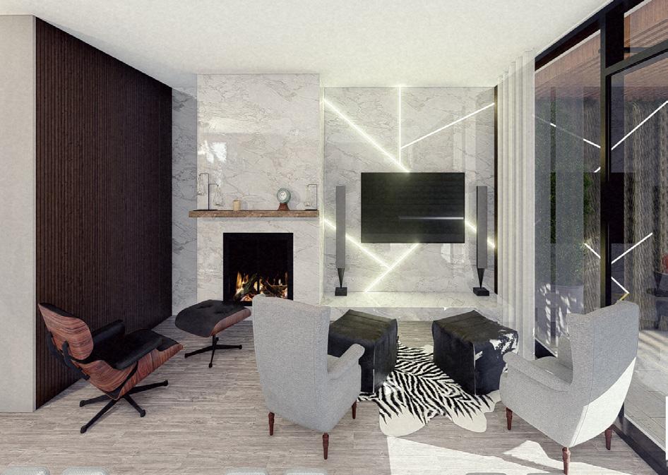 THIS PROJECT IS INTENDED TO PROVIDE A COMFORTABLE, LARGE SPACE WITH A SOURCE OF NATURAL LIGHT AND A MODERN FINISH. THE AIM OF THE LAYOUT OF THIS RESIDENTIAL PROJECT IS TO USE THE MAXIMUM LOT AREA WHILE COMPLYING WITH THE ZONING BYLAW OF THE ONTARIO BUILDING CODE. THE DESIGN IS INSPIRED BY MODERN INDUSTRIAL HOUSE. THERE IS A STRONG AND COHESIVE FEEL TO THE INTERIOR AND EXTERIOR DESIGN OF THE HOUSE. THE MATERIALS USED FOR THIS PROJECT WERE CAREFULLY SELECTED TO ENSURE THAT ALL OF THE MATERIALS WOULD BLEND WELL TOGETHER. THE LIGHTING OF THE HOUSE ADDS AN AMERING FEEL TO THE INTERIOR AND EXTERIOR DESIGN OF THE HOUSE SO THAT MATERIALS WILL STAND OUT.
