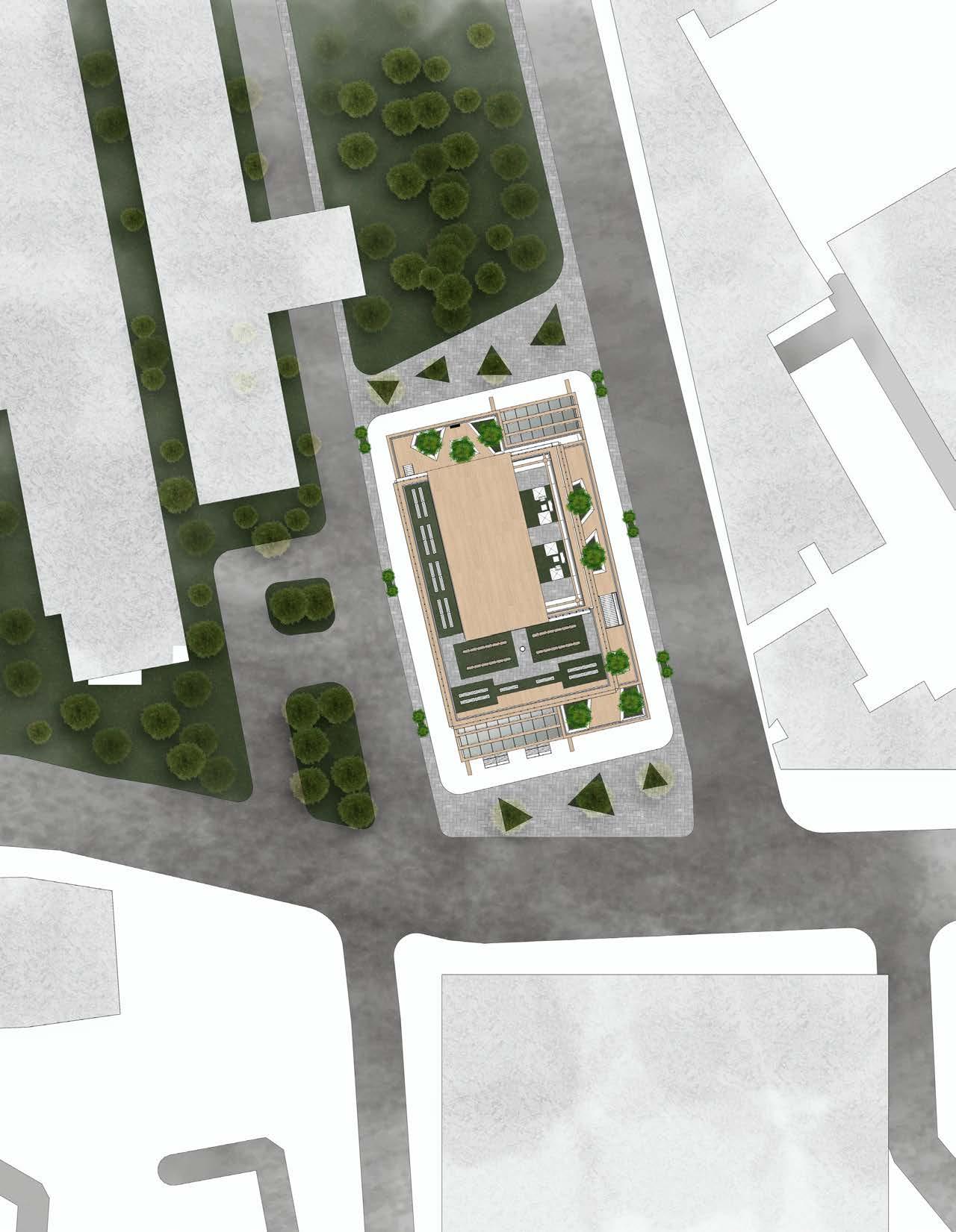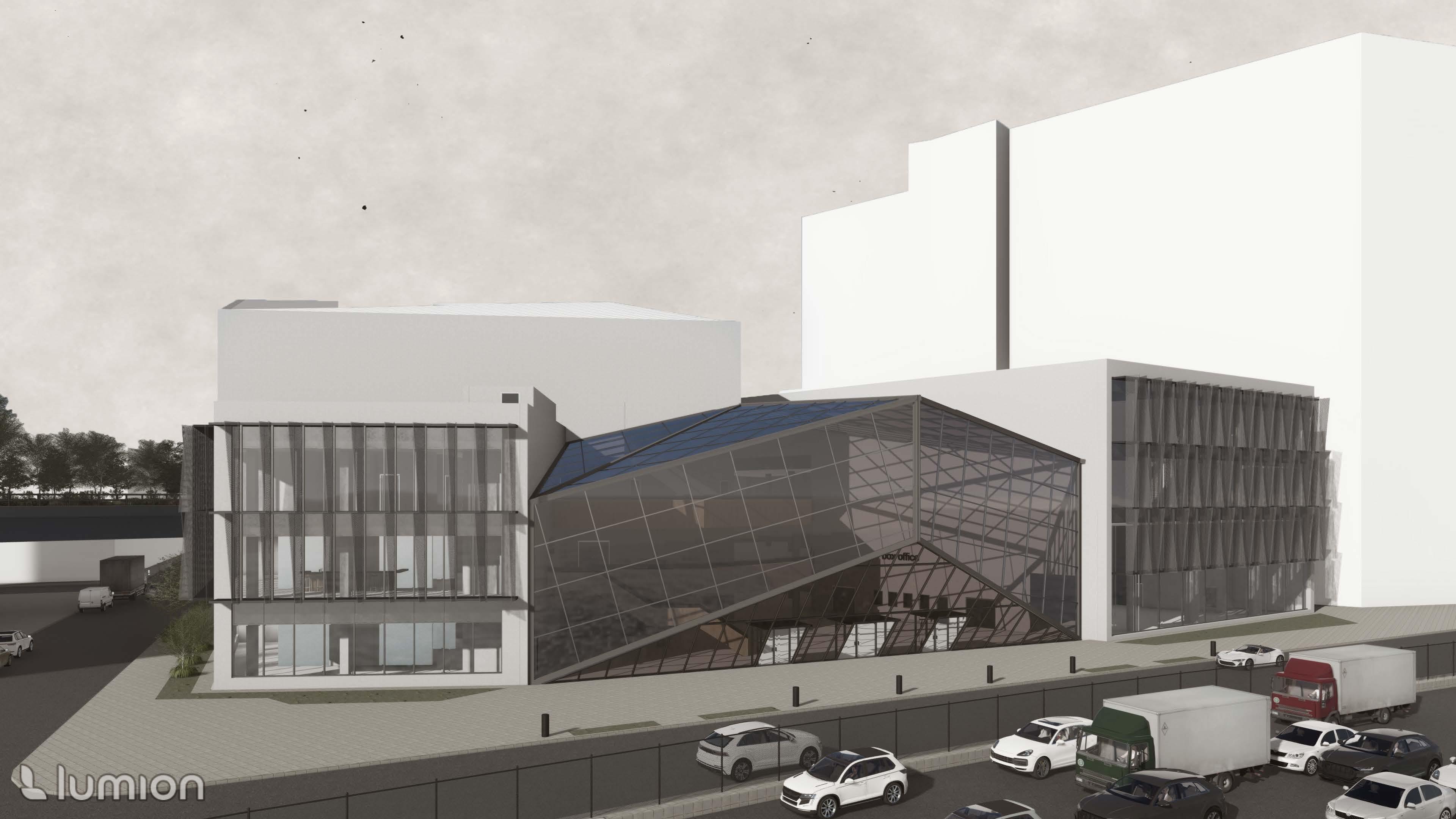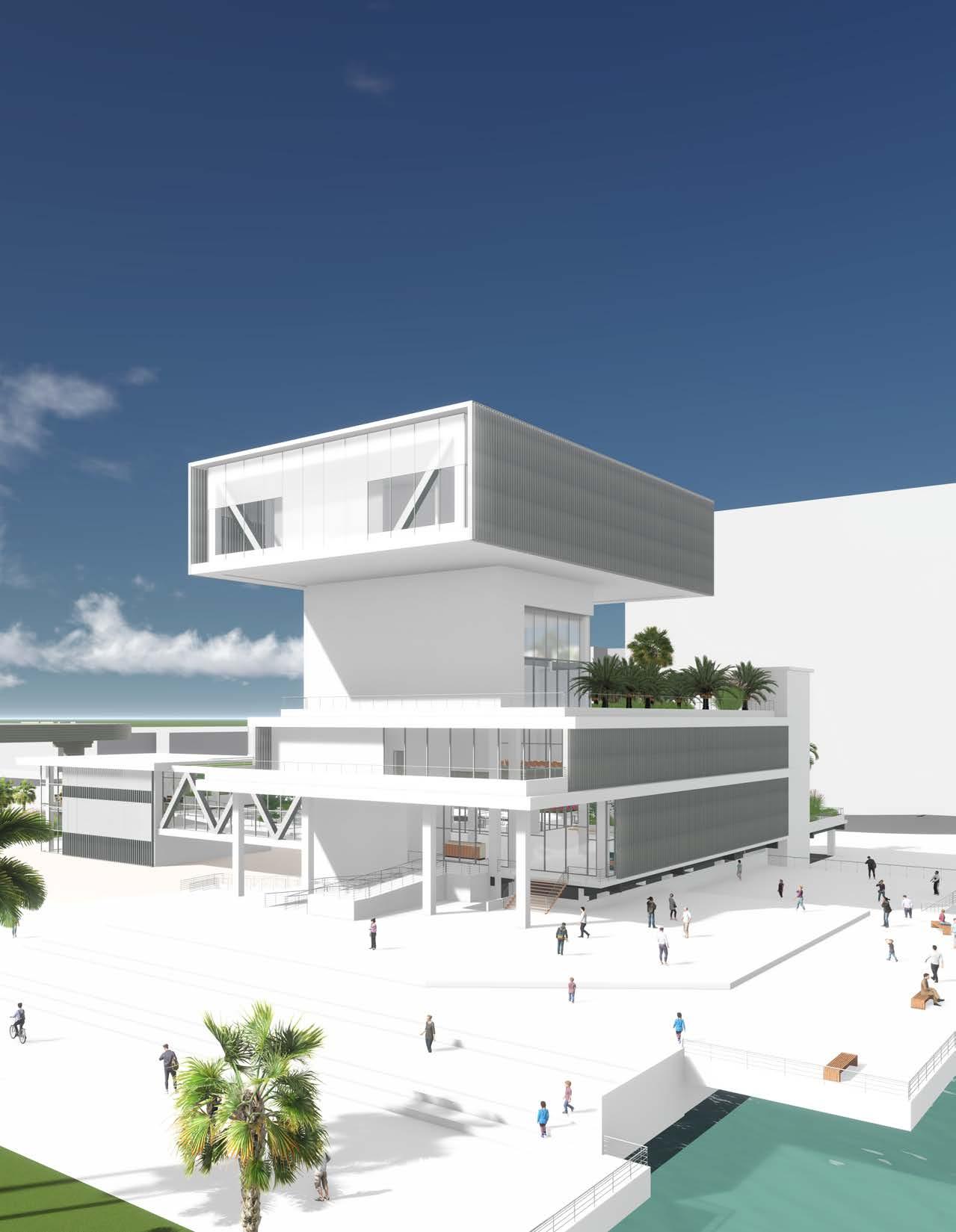 a mixed use building supporting both education, exhibitions, innovative co-working spaces, and engaging environmental innovation by supporting emerging environmental technology startups.