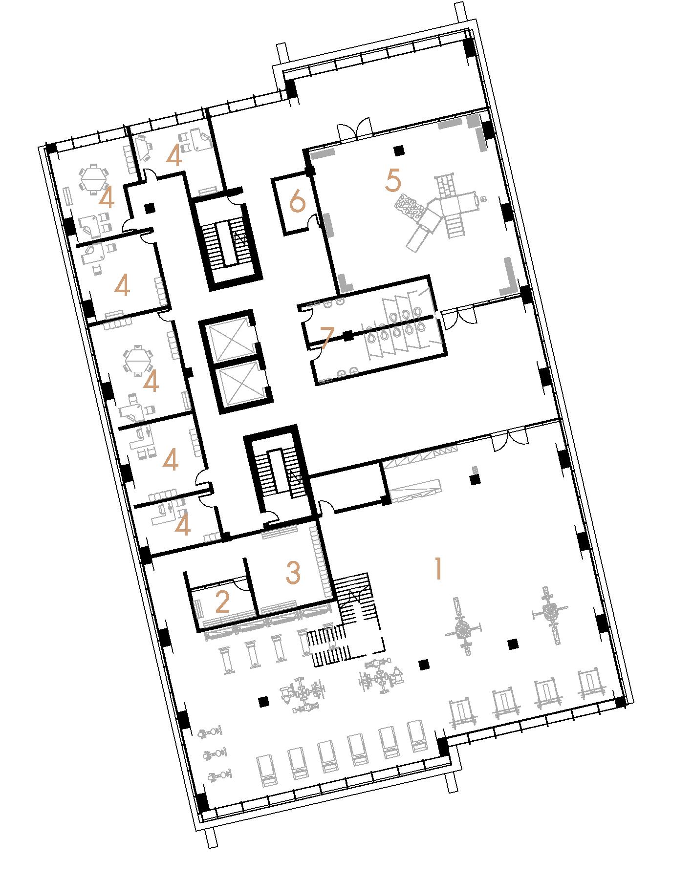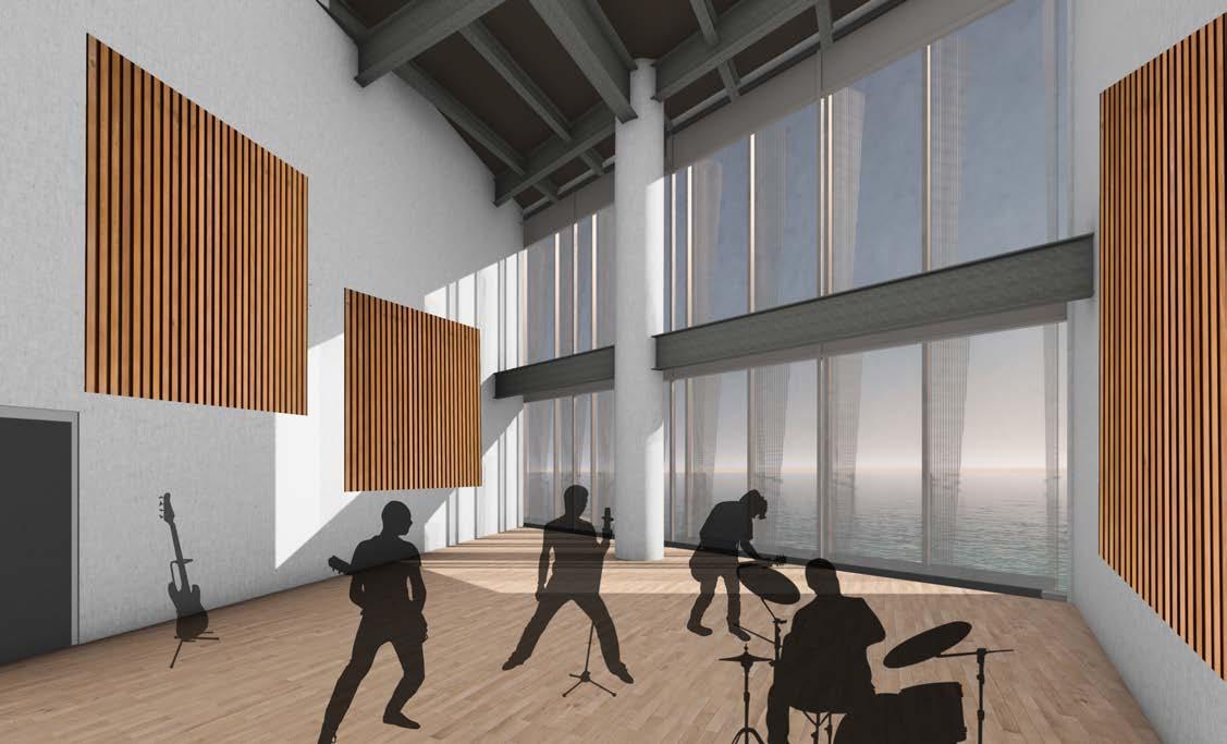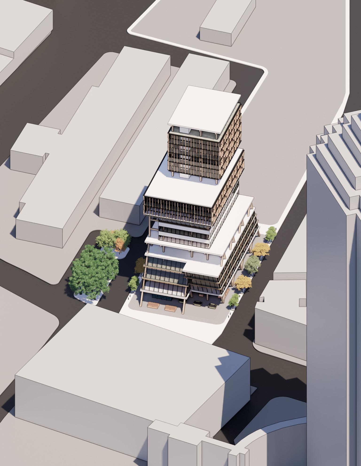 a mixed use building supporting both education, exhibitions, innovative co-working spaces, and engaging environmental innovation by supporting emerging environmental technology startups.
