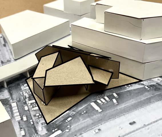 The concept of “Fragmentation & Floating” for the performance hall along the High Line responds to the site’s layered urban context by deconstructing traditional massing and elevating key programmatic elements.