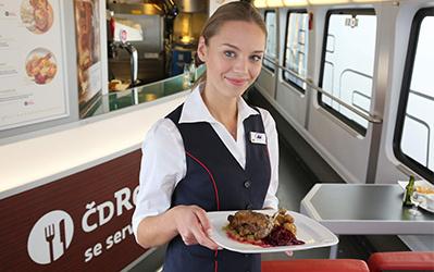 Toget har en hel restaurantvogn med due og opdækning. Her kan man købe lækre måltider som Goulasch, sandwich, kager, tjekkisk øl og andre forfriskninger. Priserne er på tjekkisk niveau og derfor fortsat lave i forhold til hvad vi er vant til fra Danmark.