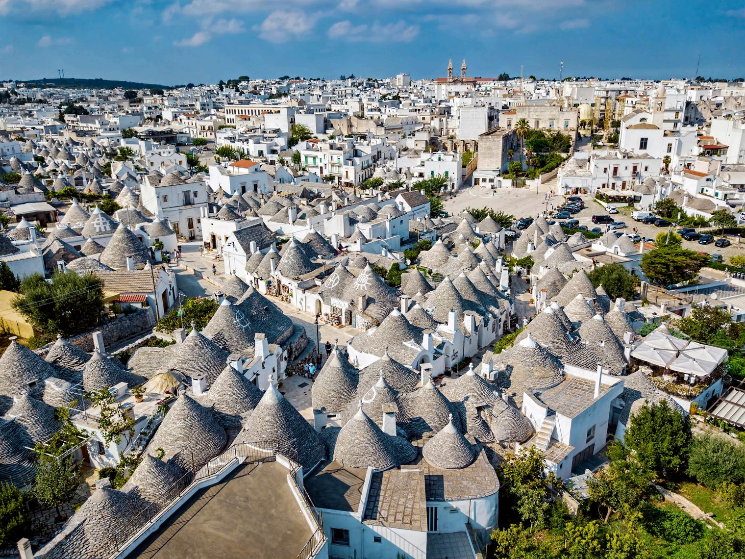 Ved ankomsten til Alberobello venter en by kendt for sine karakteristiske trulli-huse med kegleformede tage.
