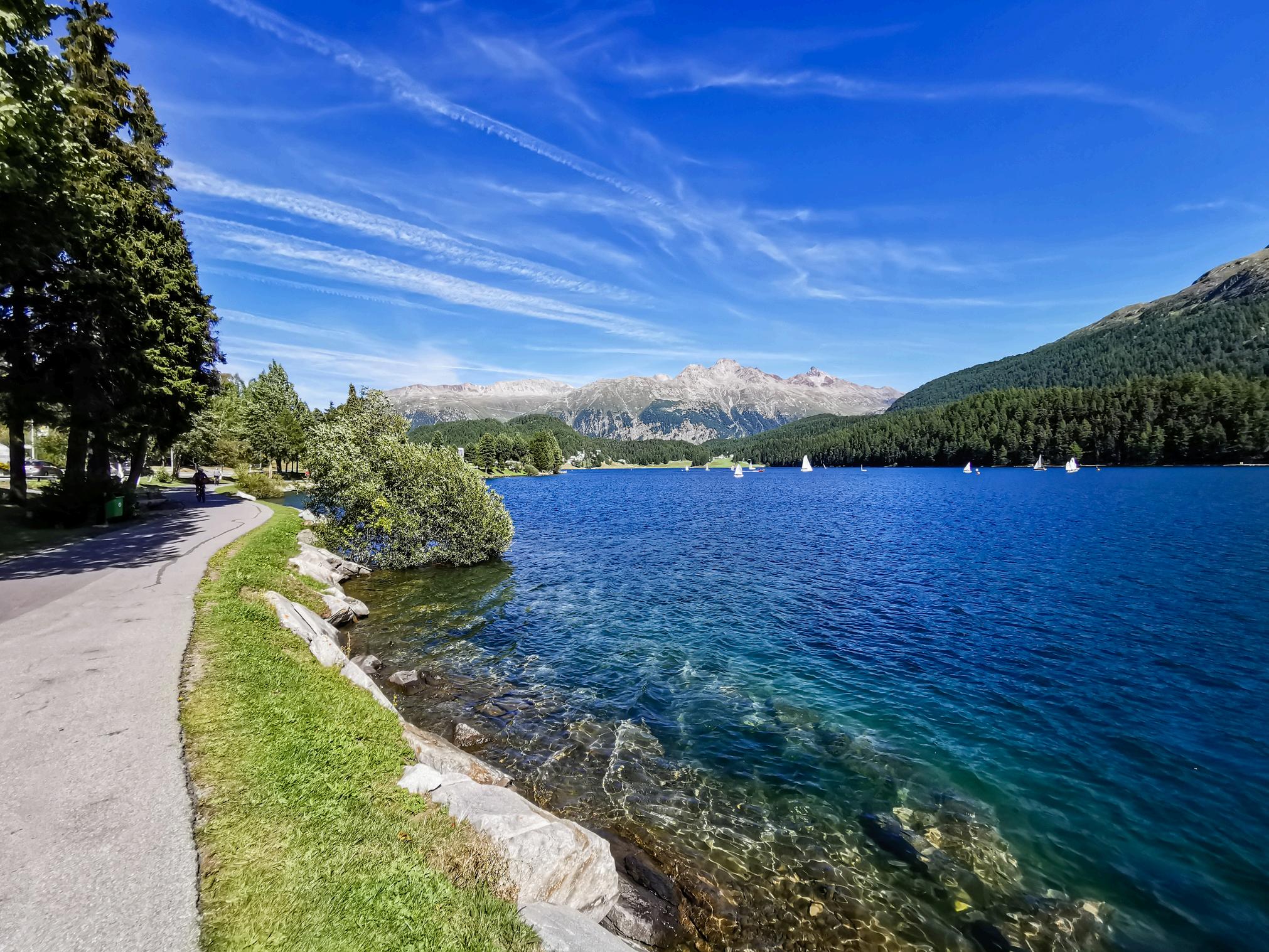 Dagen tilbringes i St. Moritz . Der emmer af den særlige schweiziske alpe-stemning og som var værtsby for de olympiske vinterlege i 1928 og 1948. Udover vintersport er St. Moritz kendt som populært kursted. Til dagligt bor der kun ca. 5000 mennesker i byen og der er en rolig og hyggelig stemning i byen. Om sommeren er der rig mulighed for at kaste sig ud i mange forskellige aktiviteter som f.eks klippeklatring og bjergvandring, ture på mountainbike og sejlsport i den smukke bjergsø. Der er god chance for sol idet byen er kendt for 322 solskinsdage om året.