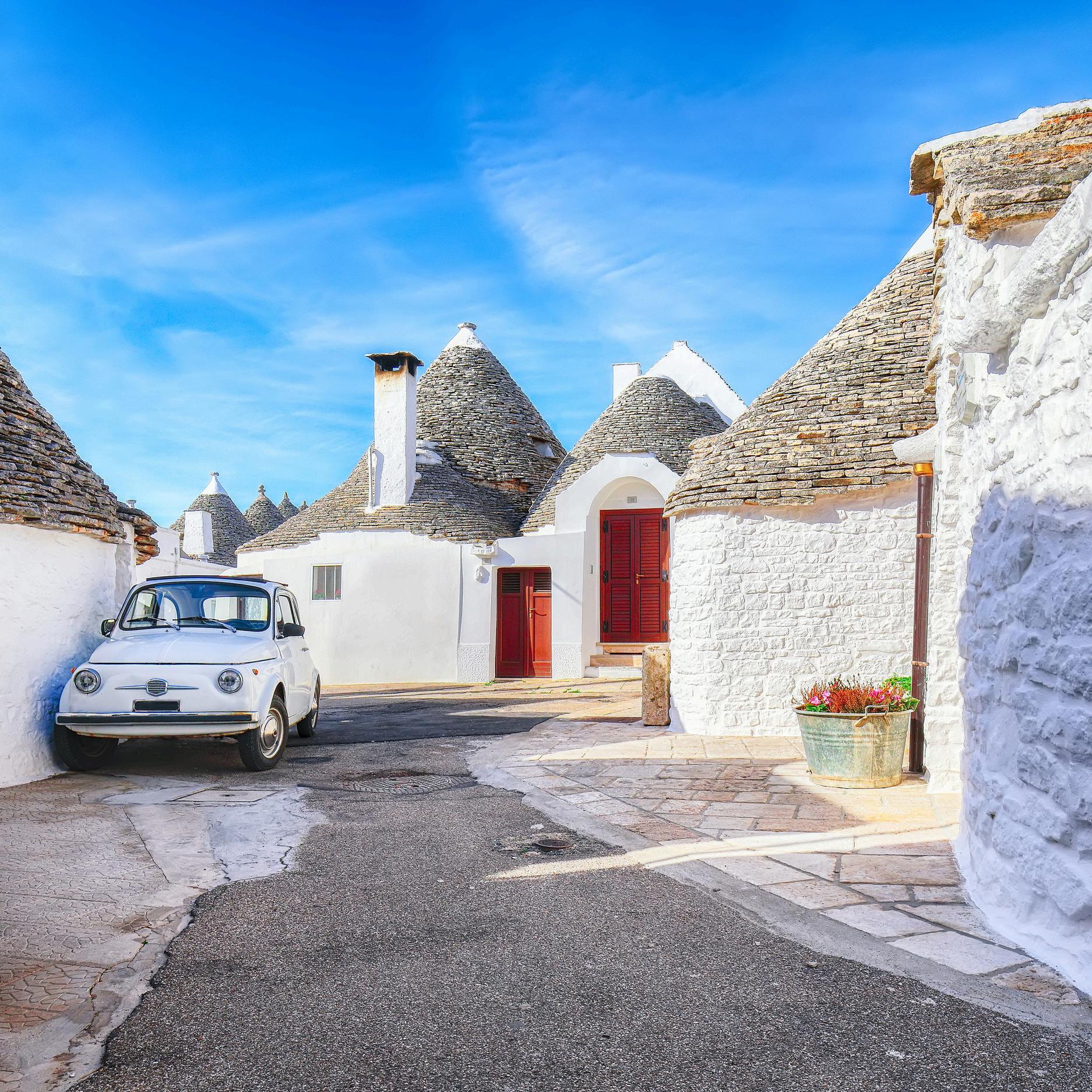 kegleformede stenhuse er på UNESCO's verdensarvsliste og giver dig en helt særlig overnatningsoplevelse. Spadsér gennem byens to kvarterer Monti og Aia Piccola, besøg Trullo
