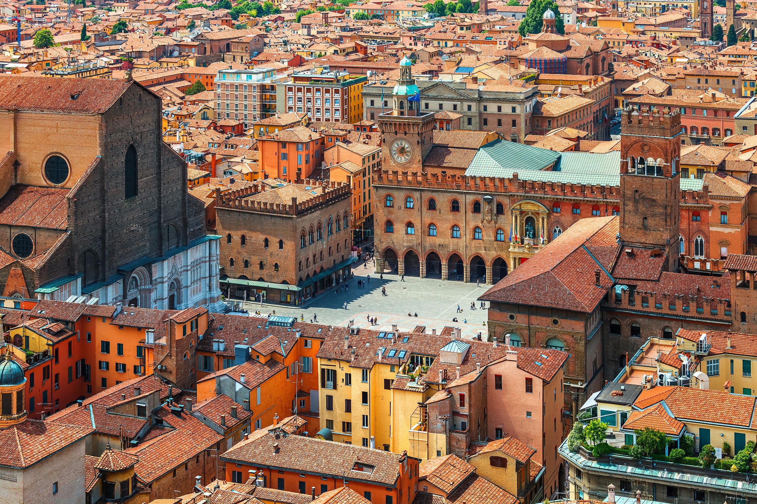 Italiens gastronomiske hovedstad i Emilia-Romagna med middelalderarkitektur og kulinariske traditioner. Bologna byder på de berømte tårne Torre degli Asinelli og Torre Garisenda, verdens ældste universitet fra 1088 og karakteristiske arkader. Besøg Piazza Maggiore med Basilica di San Petronio, udforsk lokale markeder eller nyd specialiteter som tagliatelle al ragù og tortellini. Byen kombinerer historie med autentisk italiensk gastronomi og kultur. Perfekt introduktion til italiensk livsstil.