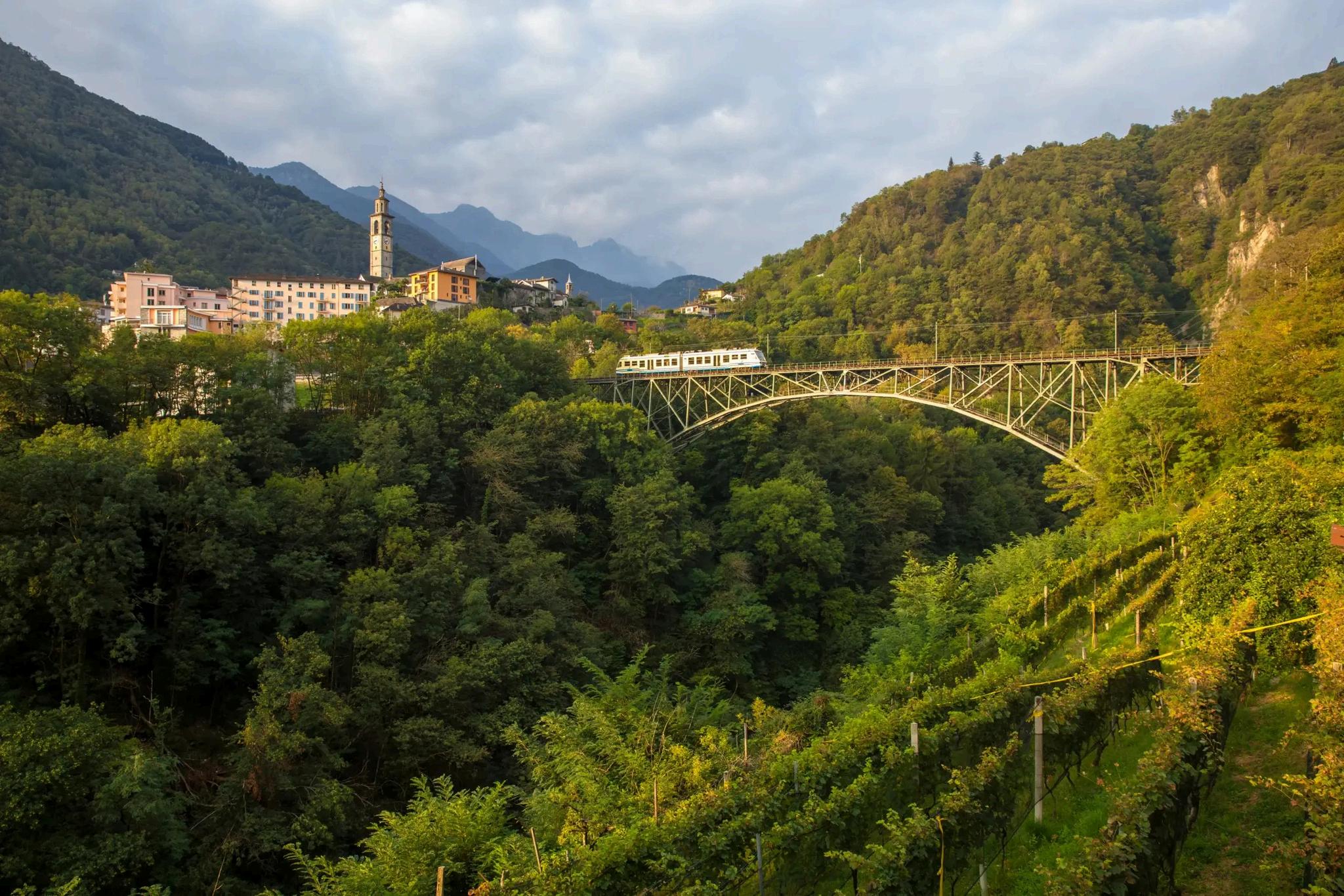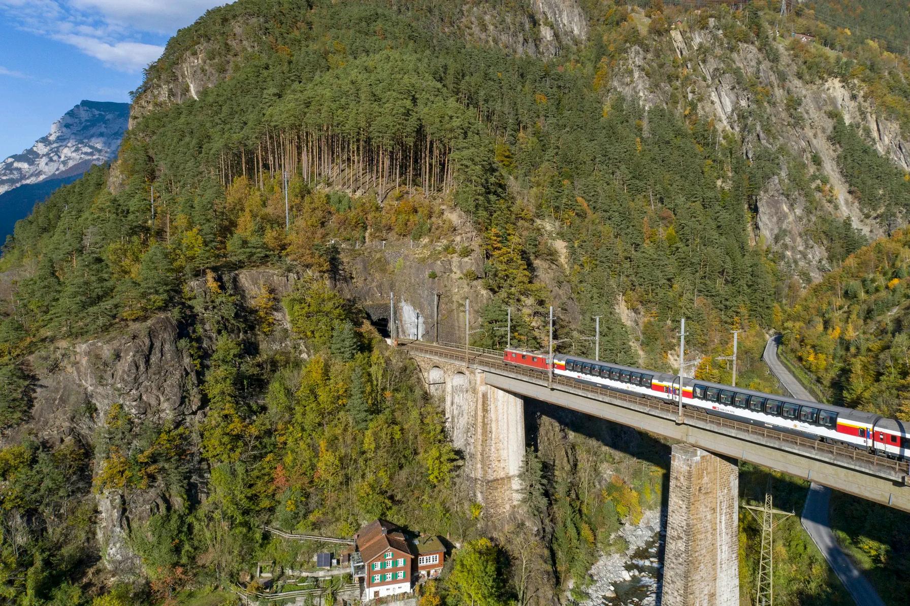 Undervejs vil du se dramatiske bjergsider, tunneller og broer, før du når de solrige dale i Ticinoregionen.