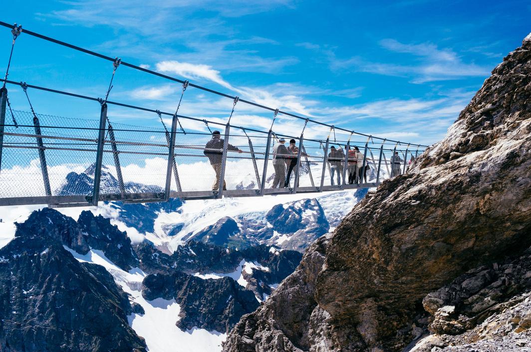 På toppen af Titlis findes der kun én sæson, nemlig vinter. Tag turen op med den verdenskendte roterende gondol, den første af sin slags i verden, som garantere en panorama oplevelse uden lige. På toppen i 3020 m.o.h kan du som det eneste sted i regionen komme ud og gå på en gletcher, eller tage den spændende tur over Titlis Cliff Walk som er Europas højeste hængebro. Med 500 meter over jorden, og 100 meter lang vil turen over hængebroen med garanti give et lille sus i maven.
