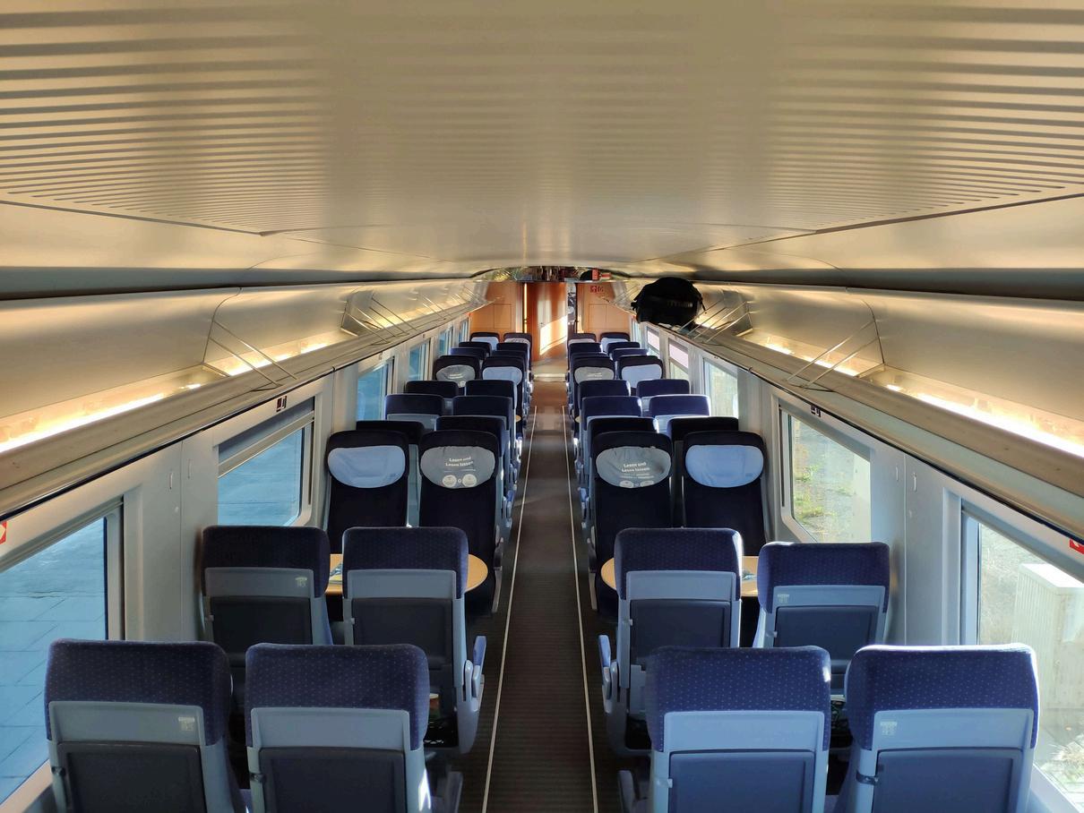 Sæderne er komfortable og der er god benplads. Hver vogn har bagagehylder, ligesom at der over sæderne eller ved fødderne er god plads til håndbagage.
