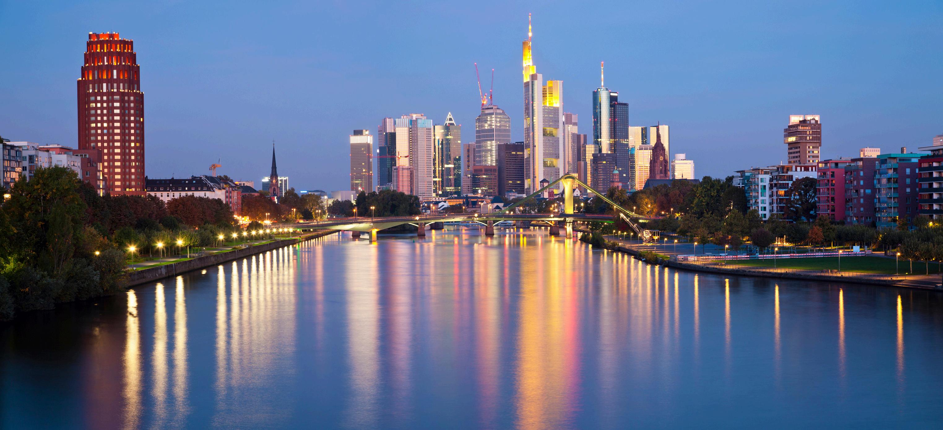 Frankfurt er en moderne metropol i Tyskland, kendt for sin imponerende skyline og status som finanscentrum. Byen kombinerer historisk charme med moderne arkitektur, især omkring Römerberg, hvor bindingsværkshuse står side om side med moderne bygninger. Mainfloden løber gennem byen og giver mulighed for hyggelige sejlture. Frankfurt er også hjemsted for kulturperler som Städel Museum og Goethe-huset samt den livlige shoppinggade Zeil. Byen er en spændende blanding af tradition og innovation.