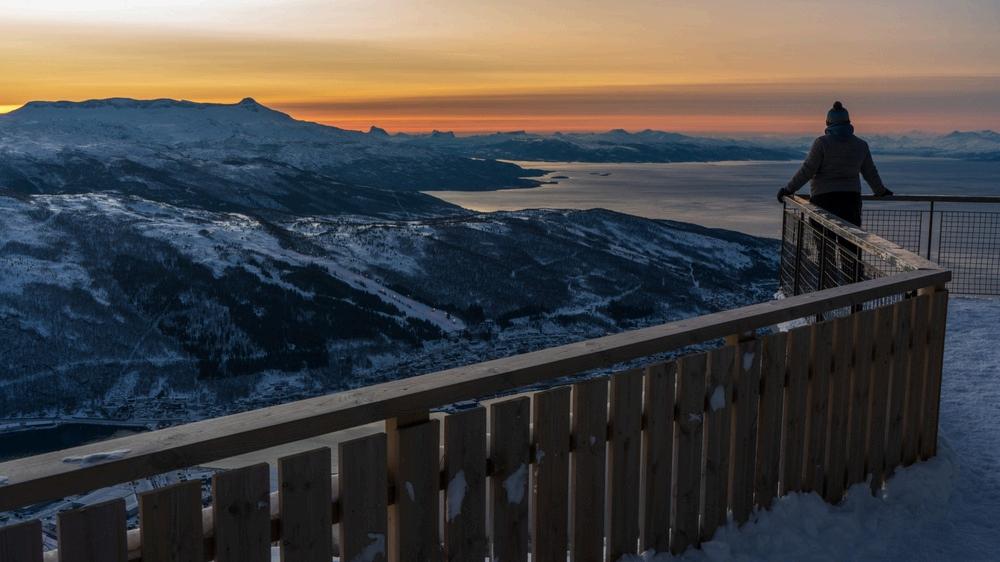 Med svævebanen fra centrum kommer I hurtigt op på Narvikfjellet. Herfra er der flot udsigt over byen, Ofotfjorden og de omkringliggende fjelde. Om vinteren er området kendt for skiløb med havudsigt, og resten af året er det et godt sted til korte vandreture og roligt udsyn over landskabet. Narvikfjellet er en nem og tilgængelig udflugt, som kan tilpasses både korte og lange ophold.