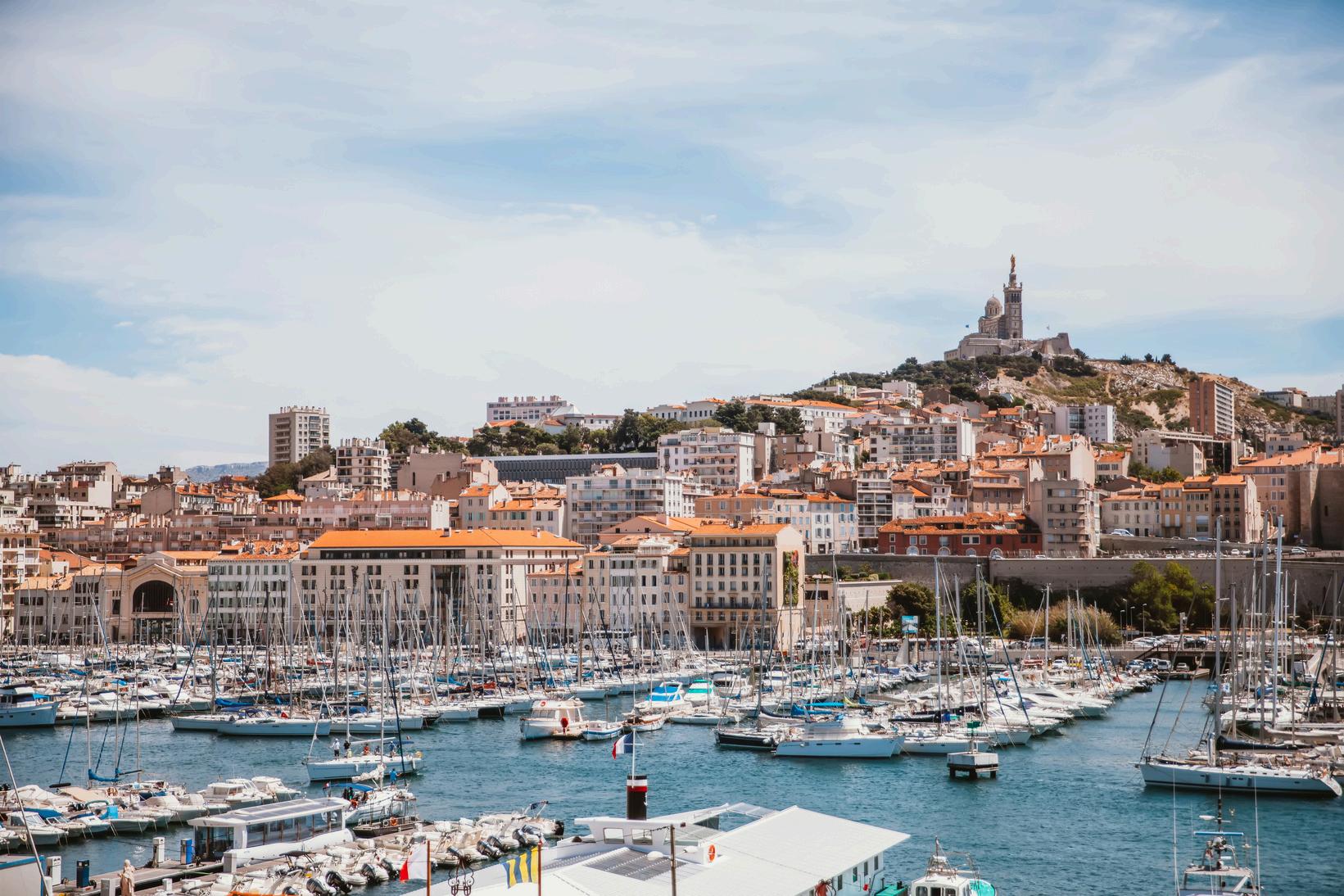 Marseille er en livlig havneby ved Middelhavet med den gamle havn Vieux-Port som naturligt samlingspunkt. Her mødes fiskerbåde, caféer og restauranter, og i kvarteret Le Panier finder du smalle gader og farverige facader. Byen har en tydelig middelhavsstemning og er et godt sted at nyde udsigt, frisk luft og provencalsk atmosfære.