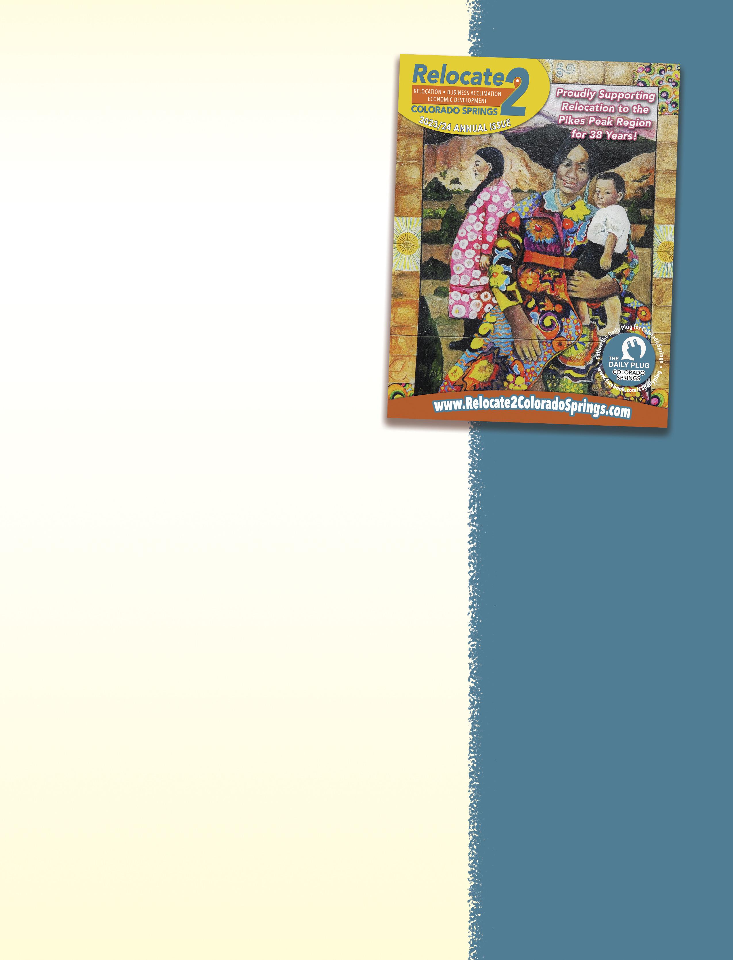 The online RELOCATE 2 Colorado Springs™ assists individuals, families and businesses relocating to Colorado Springs. Also supports economic development and military family preparedness. • 38-year reputation as the premier source of information for new residents and businesses • A leader in military relocation and family support. (At all military bases in town.) • Used by Visit Colorado Springs, PPAR and local Chambers of Commerce. • Available online @ www.RELOCATE2ColoradoSprings.com • Social media platform for up-to-date client messaging –The Daily Plug for Colorado Springs –www.Facebook.com/csdailyplug RESERVE YOUR 2024/25 AD SPACE! RESERVE BEFORE 1/1/2024 AND GET A 10% DISCOUNT! Leverage your marketing dollars! Promote your business online & social media For more information, contact Keaton Publications Group LLC: (716) 536-2839 or lribits@keatonpublications.com