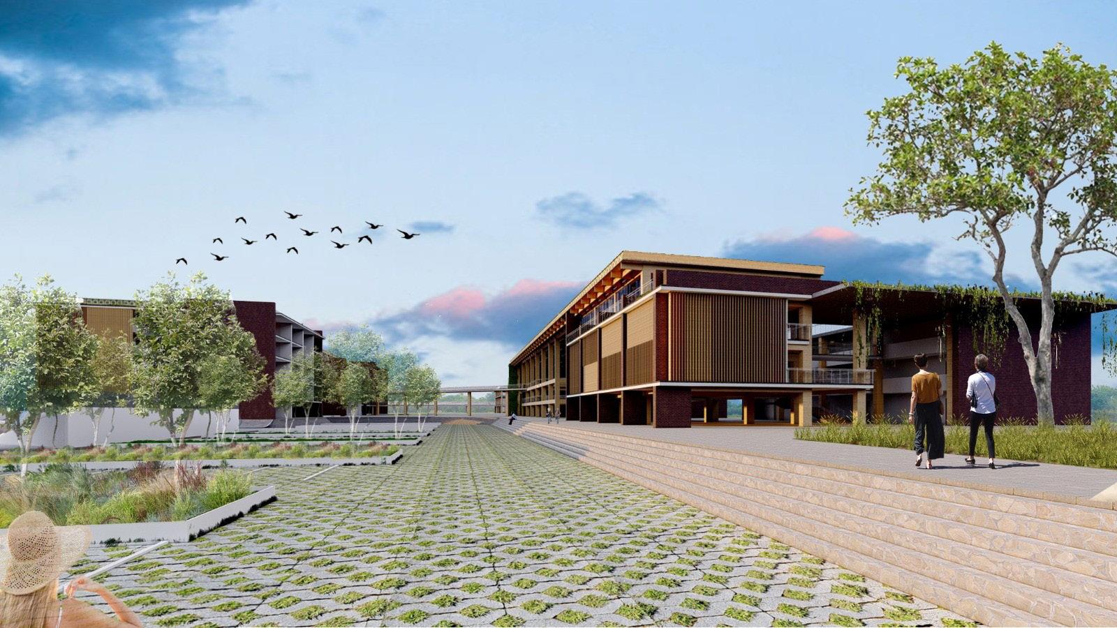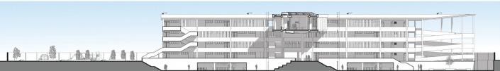 The residential project, designed for 150 apartments, seeks to foster community integration by reconfiguring the existing parking area that currently separates the university campus and the adjacent community, aiming to create a shared and inclusive environment through the introduction of amenities and a community center.