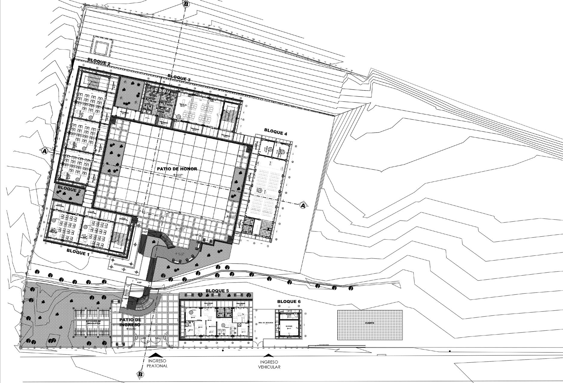 PLANTA DISTRIBUCIÓN GENERAL PRIMER NIVEL CALLE SIN NOMBRE PASAJE SIN NOMBRE PASAJE SIN NOMBRE GALERIA DE CIRCULACION NPT 0.15 GALERIA DE CIRCULACION NPT 0.15 GALERIA DE CIRCULACION NPT 0.15 GALERIA DE CIRCULACION GALERIA DE CIRCULACION NPT 0.15 GALERIA DE CIRCULACION GALERIA DE CIRCULACION NPT 0.15 NPT 0.15 BLOQUE 7 (EXISTENTE) BLOQUE 8 PATIO DE HONOR AULA 05 AULA 04 EXPENDIO CAFETÍN ESCOLAR ACOPIO RECICLAJE SUB ESTACIÓN CANCHA DE BASQUET CANCHA DE VOLEY GALERIA DE CIRCULACION GALERIA DE CIRCULACION NPT 0.15 NPT 0.15 SS.HH. MUJERES SS.HH. VARONES NPT 0.15 HALL NPT 0.15 BLOQUE 3 BLOQUE 2 BLOQUE 1 TÓPICO HALL PROFESORAS SS.HH. P-4 SS.HH. SS.HH. BLOQUE 5 BLOQUE 6 P-4-OFICINA DE EDUCACIÓN FÍSICA DEPÓSITO DE MATERIALES DEPORTIVOS HALL P-2 BLOQUE 4 BLOQUE 9 (EXISTENTE) AULA 08 AULA 07 SS.HH. MUJERES SS.HH. VARONES GALERIA DE CIRCULACION 3371.13 m.s.n.m. GALERIA DE CIRCULACION GALERIA DE CIRCULACION VIDEO VIGILANCIA GUARDIANÍA NPT 2.23 Area = 60.00 m2 Area 60.00 m2 NPT + 0.25 Area 60.20 m2 NPT 0.25 NPT 0.62 Area 17.10 m2 TANQUE CISTERNA HUERTO ÁREA DE ESTAR 01 CUARTO DE BOMBAS ÁREA DE ESTAR 02 3371.08 m.s.n.m. 3371.18 m.s.n.m. NPT + 0.52 NPT + 0.15 NPT + 0.85 NPT 0.85 NPT + 0.15 SUM COMEDOR NPT 0.25 Area 121.40 m2 COCINA COCINA GALERIA DE CIRCULACION NPT 0.15 GALERIA DE CIRCULACION NPT 0.15 GALERIA DE CIRCULACION NPT 0.15 DEPÓSITO SUM ATENCIÓN Area 5.95 m2 DEPÓSITO DE ALIMENTOS COCINA CONTROL SS.HH. Area 6.00 m2 P-2 D C A A B A B C C NPT 3.50 NPT 3.50 NPT + 0.62 Area 10.85 m2 FECHA: JUNIO 2019 A-1 PLANO DE: MEJORAMIENTO Y AMPLIACION DE LOS SERVICIOS EDUCATIVOS DE LA I.E. N° 51017 MARISCAL GAMARRA NIVEL PRIMARIO, DISTRITO DE CUSCOPROVINCIA DE CUSCO DEPARTAMENTO DE CUSCO" ESPECIALIDAD: ARQUITECTURA BERTHA PAZ GUILLÉN UBICACION DEPARTAMENTO: PROVINCIA: DISTRITO: LOCALIDAD: CUSCO CUSCO CUSCO URB. MARISCAL PROYECTO SUB GERENCIA DE ESTUDIOS DE INVERSION GERENCIA REGIONAL DE INFRAESTRUCTURA ING. RAUL E. ROJAS MARTINEZ ING. JOSE H. CABEZAS MANCILLA DISTRIBUCIÓN GENERAL: PRIMER NIVEL GAMARRA < 37 >