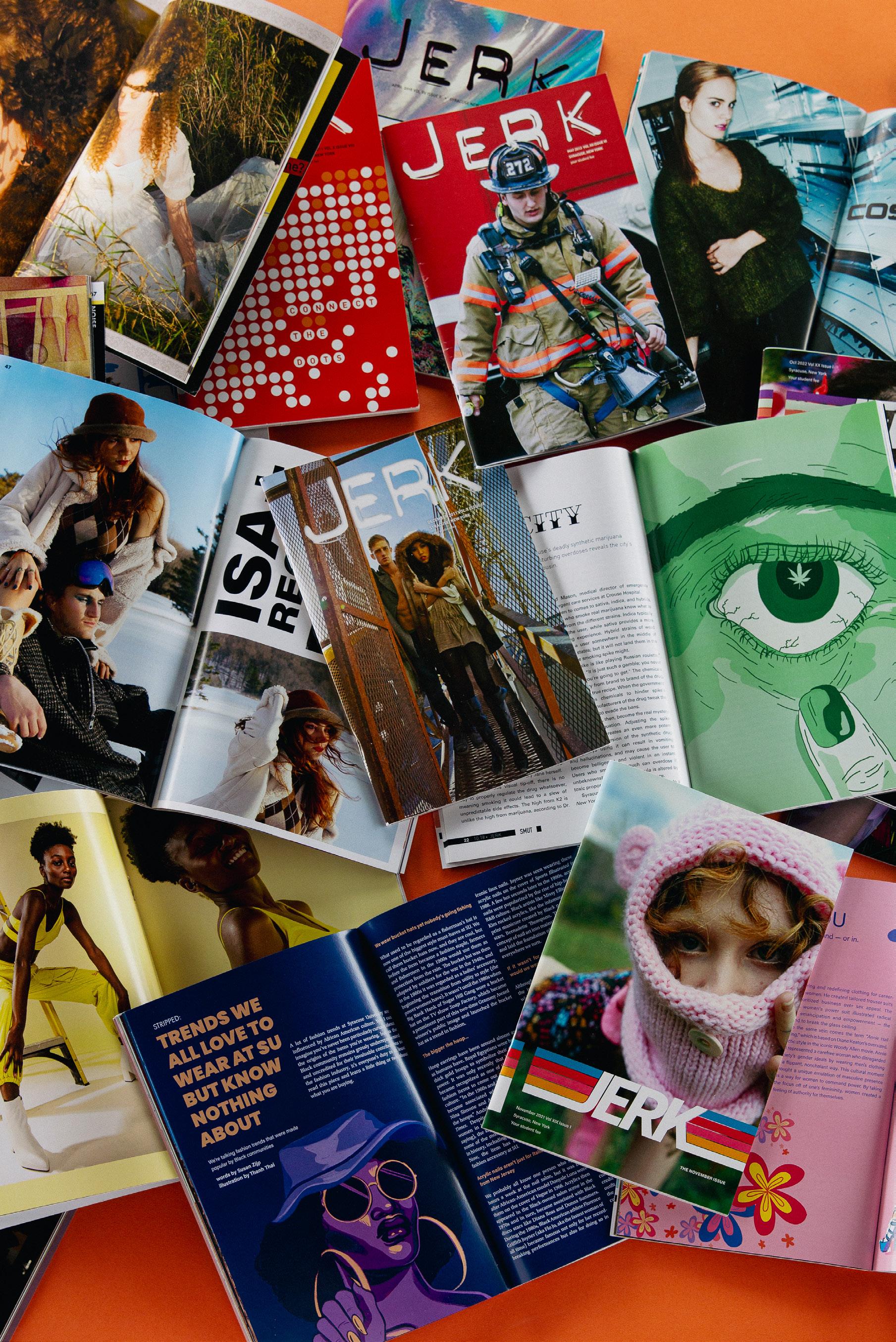 Through its content, Jerk is dedicated to enhancing insight through communication by providing an informal platform for the freedom of expression. The writing contained within this publication expresses the opinions of the individual writers. The opinions expressed herein are not those of Syracuse University, the Office of Student Activities, the Student Association, or the student body. Additionally, the ideas presented in this publication do not necessarily reflect the opinions of the Jerk Editorial Board. Furthermore, Jerk will not be held responsible for the individual opinions expressed within. Submissions, suggestions, and opinions are welcomed and may be printed without contacting the writer. Jerk reserves the right to edit or refuse submissions at the discretion of its editors. Jerk Magazine is published monthly during the Syracuse University academic year. All contents of the publication are copyright 2025 by their respective creators. No content may be reproduced without the expressed written consent of the Jerk Editorial Board.