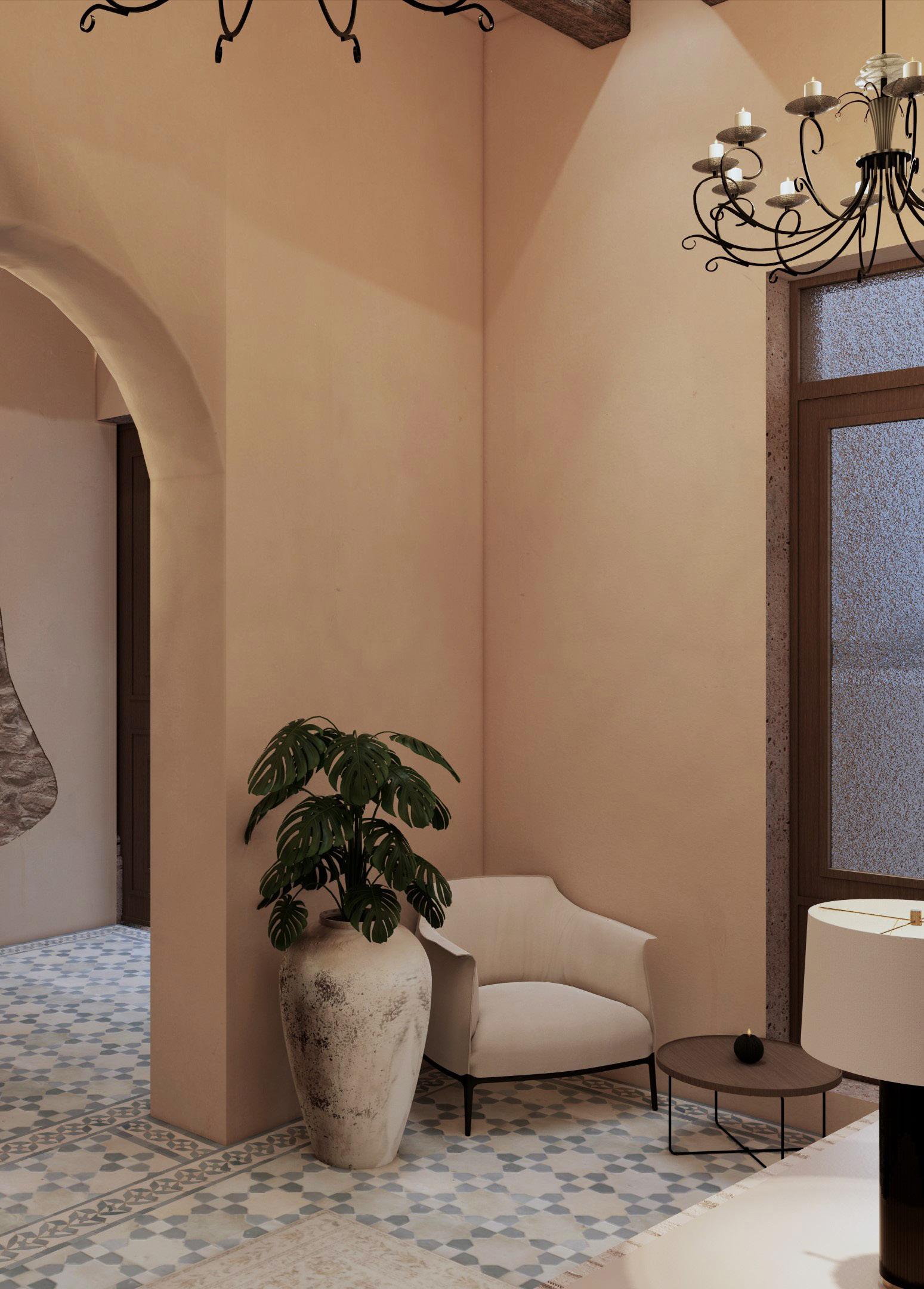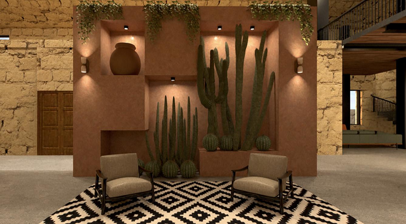 Razón por la cuál el proyecto posee un estilo inspirado en la época contemporánea, mezclando toques rústicos que nos remontan al pasado. Con pisos de pasta, cantera y madera, y viguería de madera y conservando algunos de sus acabados originales como: la cantera rosa y madera de mezquite en puertas y ventanas.