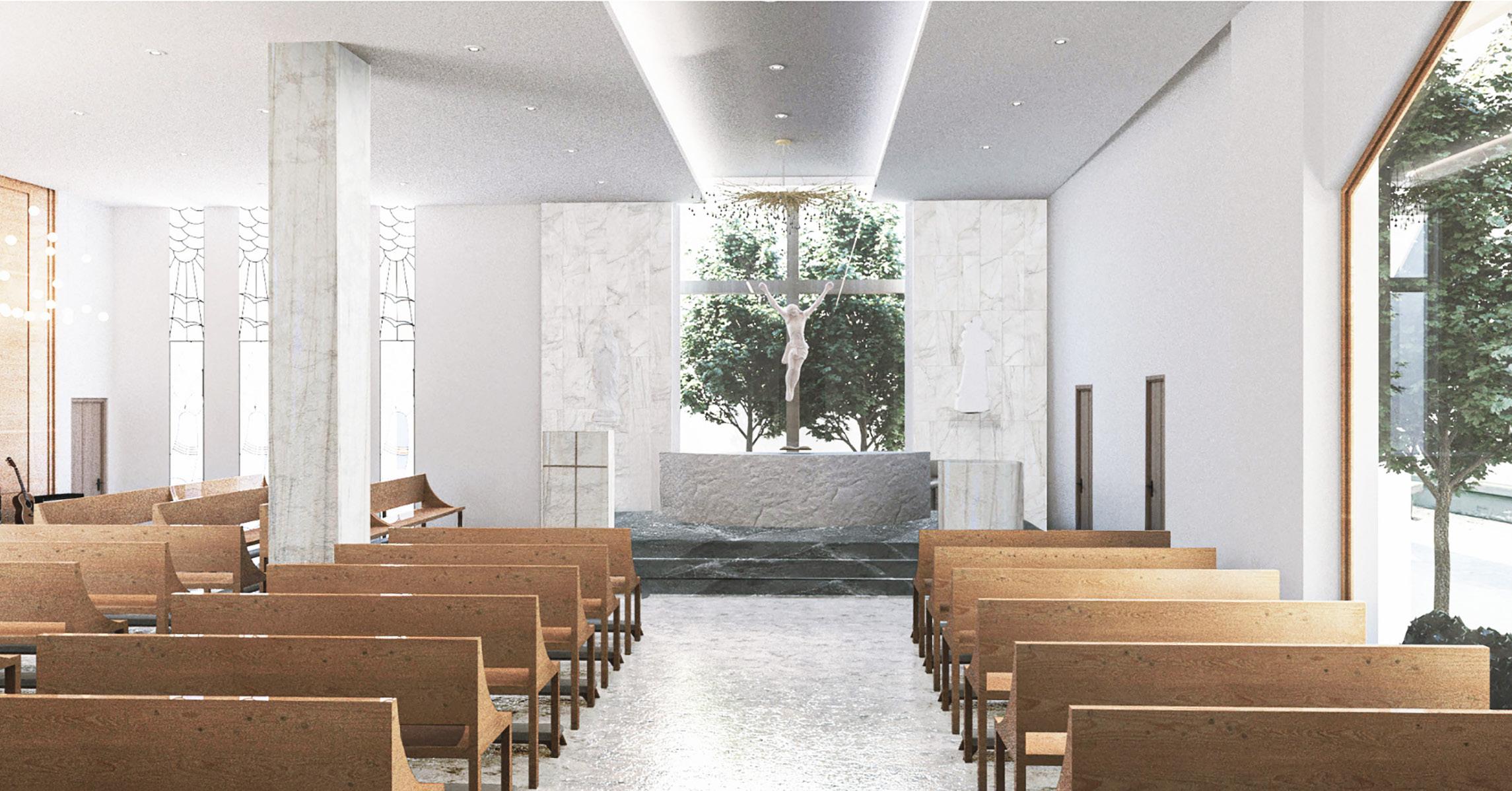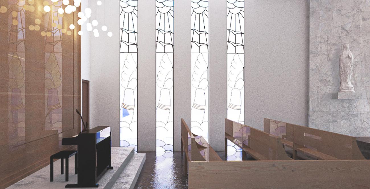 La arquitectura de la parroquia se ha diseñado meticulosamente para reflejar la ternura y la protección asociada con la figura de Mater Admirabilis.