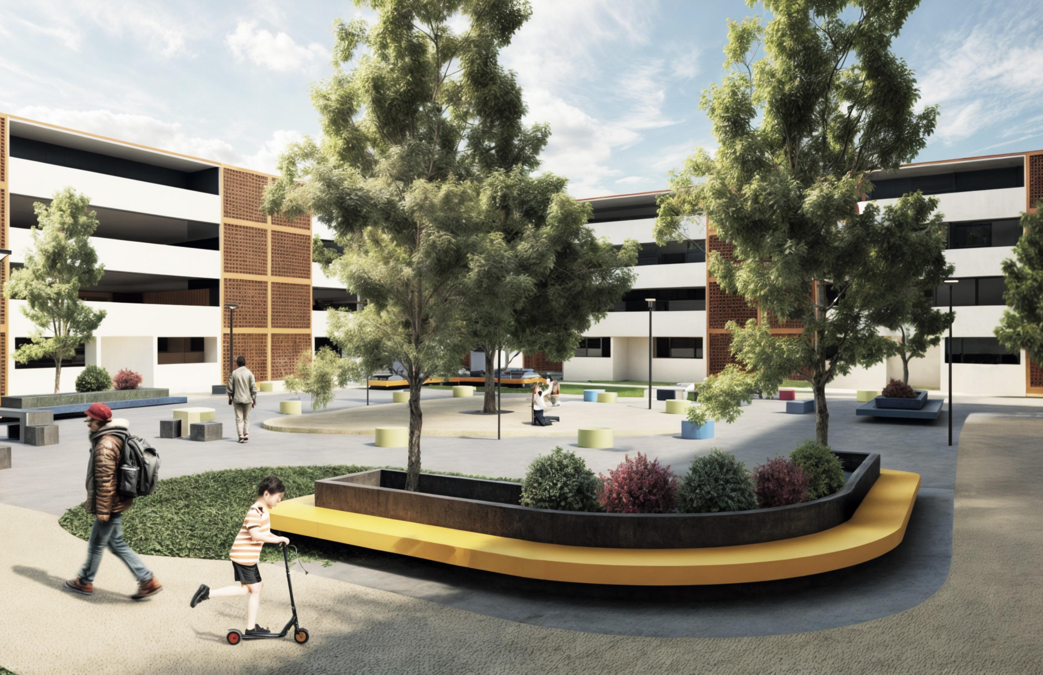 A través de un proceso de participación ciudadana, el proyecto busca diseñar y rehabilitar áreas comunes multifuncionales que prioricen a las infancias, fomenten la cohesión social y promuevan un sentido de pertenencia entre los usuarios.