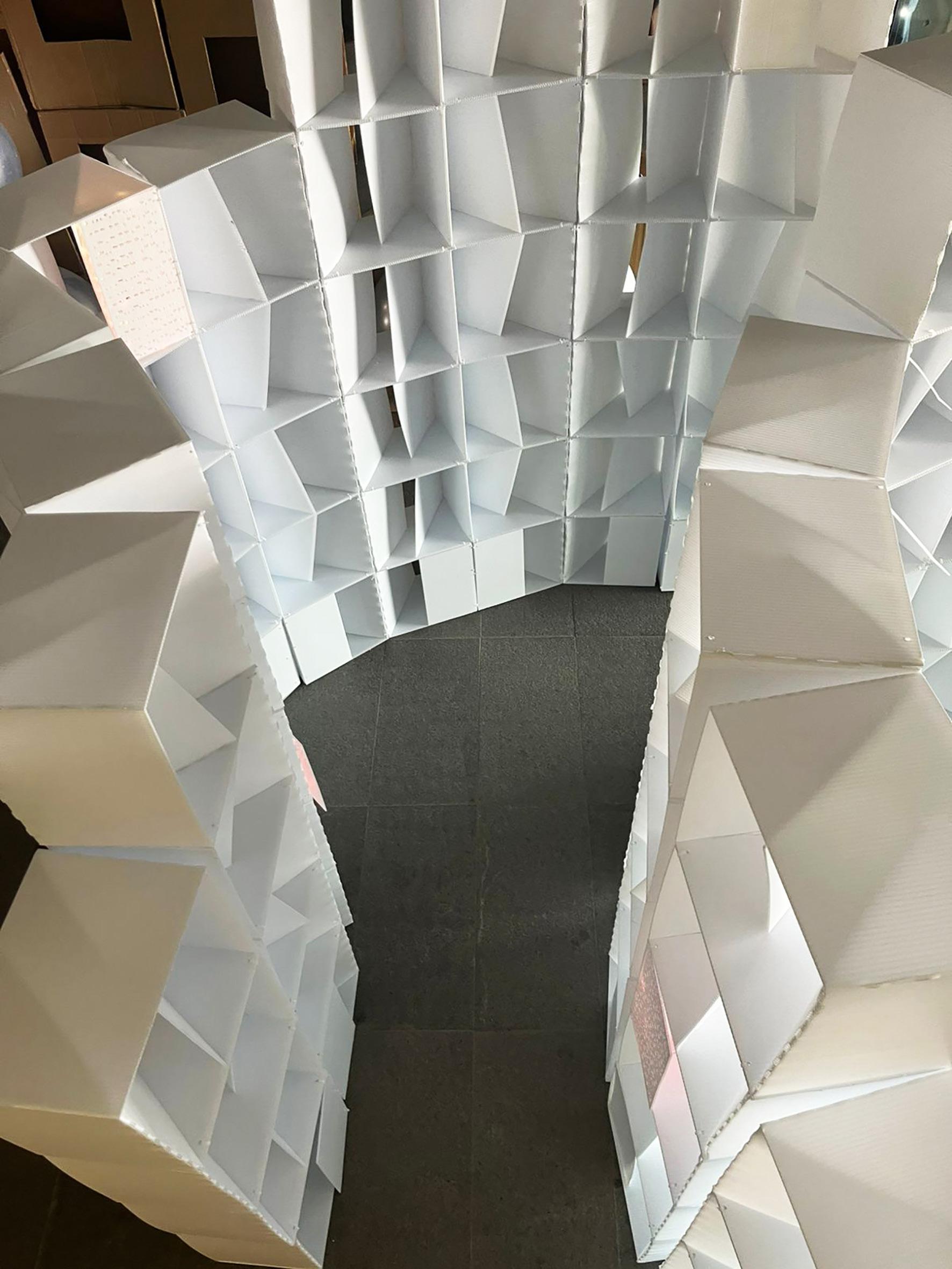 “En el diseño de la forma del habitáculo, se procuró crear una experiencia que evoca la sensación de estar en un laberinto, donde al ingresar no se revelará de