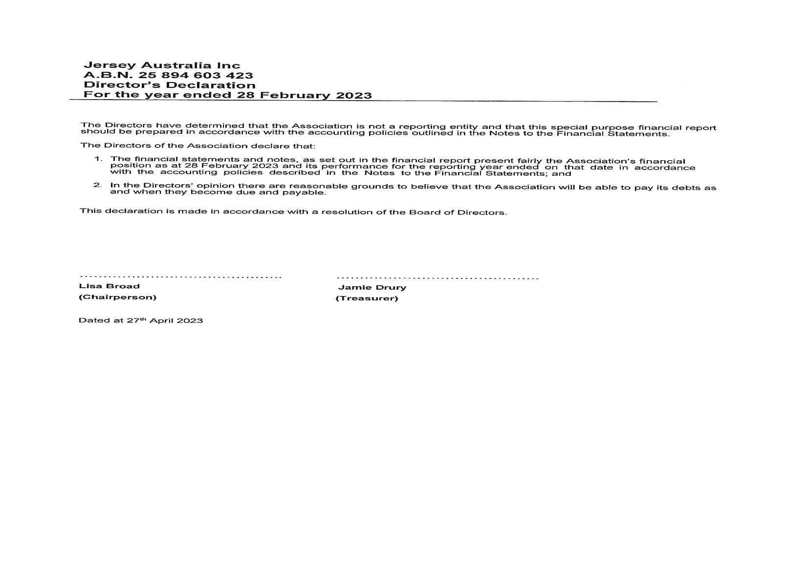 9.00am Jersey Australian 2023 Annual General Meeting