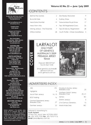 Editorial & Advertising to: Scott Joynson PO Box 292, Ascot Vale VICTORIA 3032 Ph. (03) 9370 9105 Fax. (03) 9370 9116 Email: jersey@jersey.com.au JerseyJournal June / July 2009 —