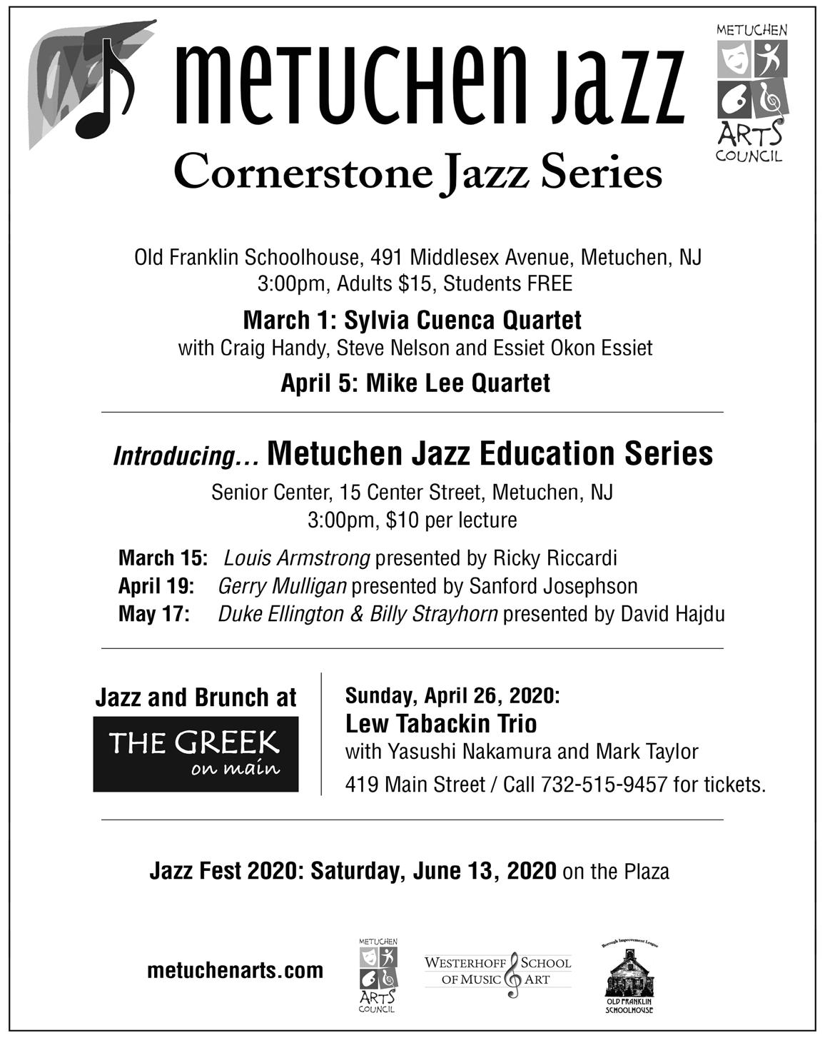 The New Jersey Jazz Society is qualified as a tax exempt cultural organization under section 501(c)(3) of the Internal Revenue Code, Federal ID 23-7229339. Your contribution is tax-deductible to the full extent allowed by law.